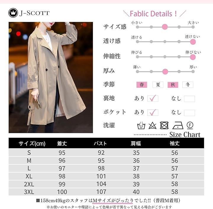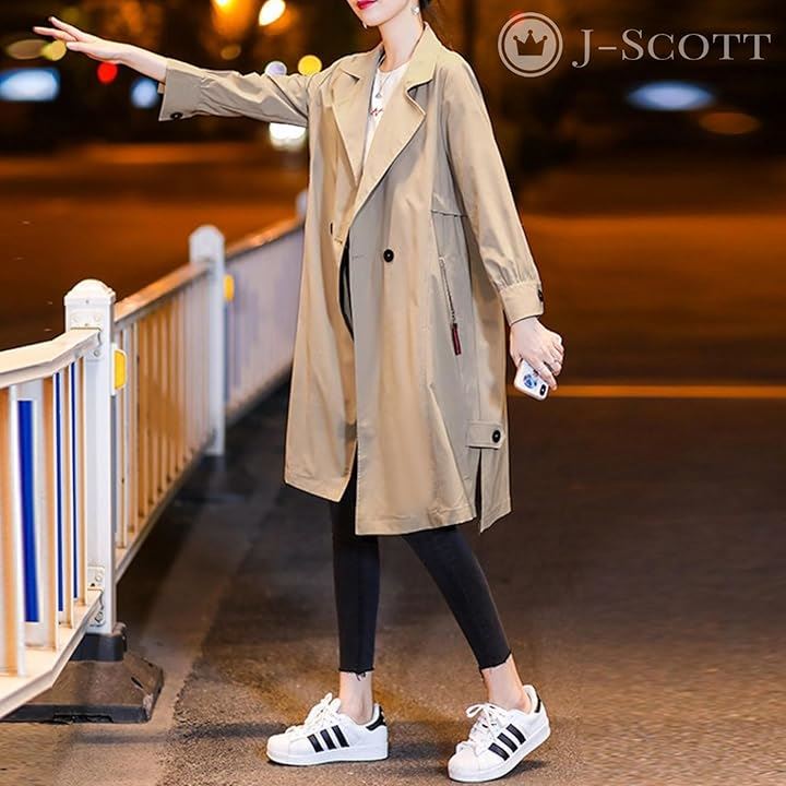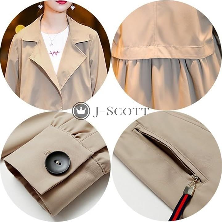 [J-Scott] トレンチコート レディース ベージュ 膝丈 ファスナーポケット パフスリーブ アウター シンプル オータム デイリー きちんと感 パフ袖 美ライン スタンダード ロングスリーブ 無地 垢抜け やわらか スプリングコート JS126 |