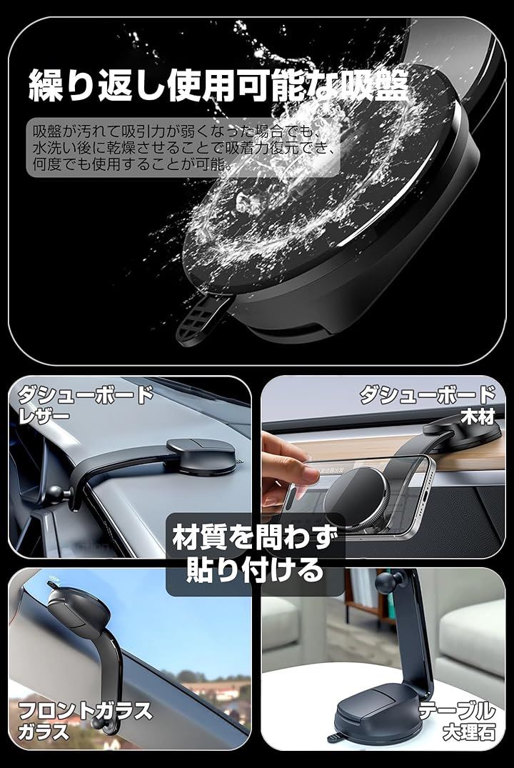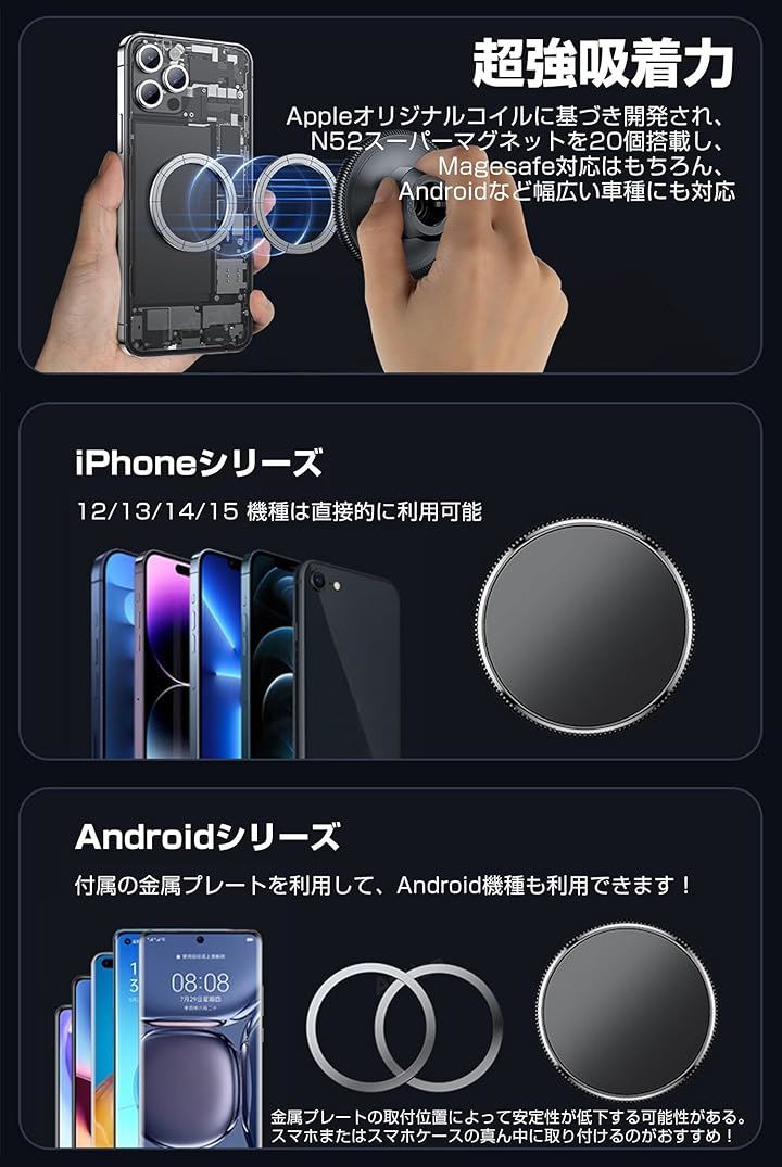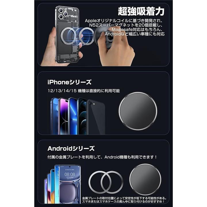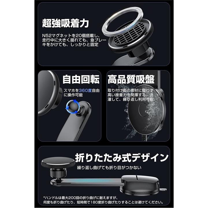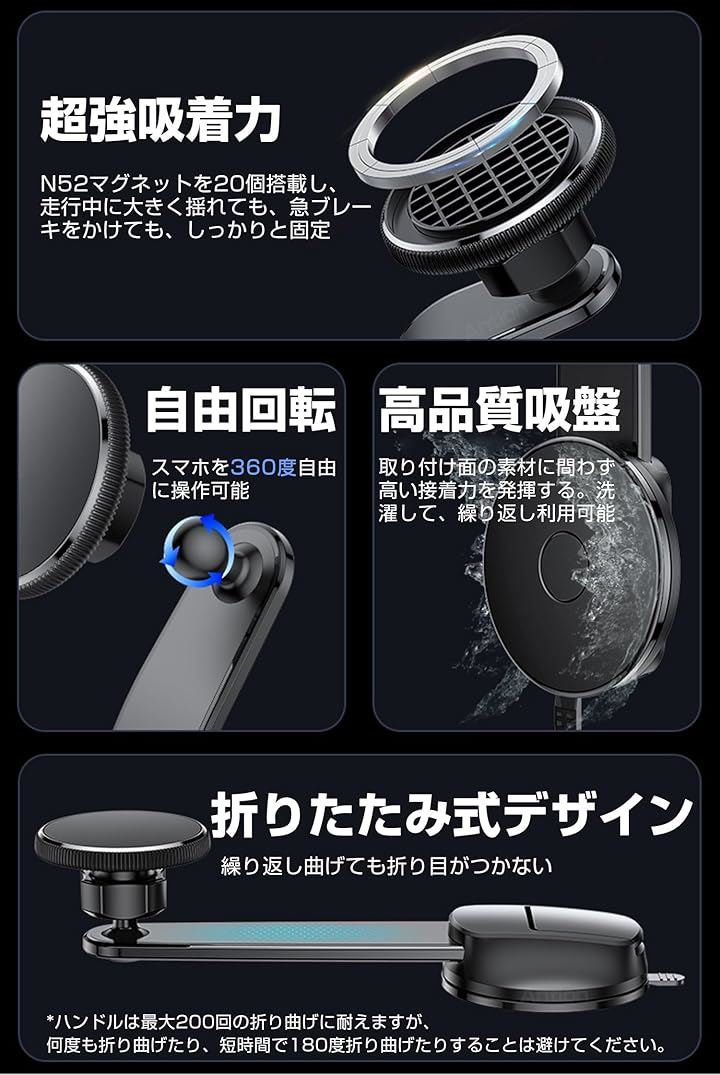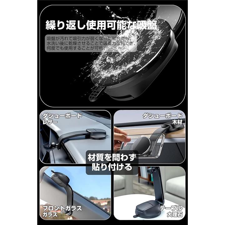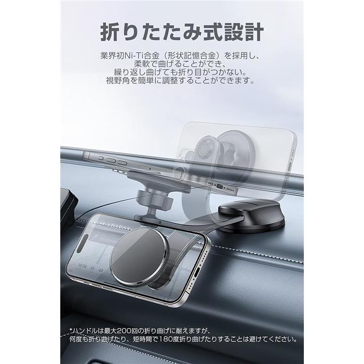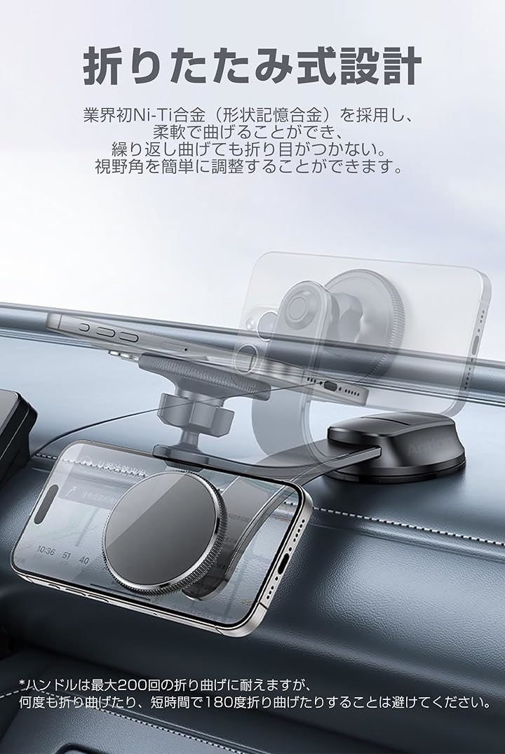 スマホホルダー マグネット式携帯電話ホルダー MagSafe 車載ホルダー 折り畳み可能 形状記憶合金 超強磁力 超強力粘着力 取り付け簡単 全車種対応 全機種対応