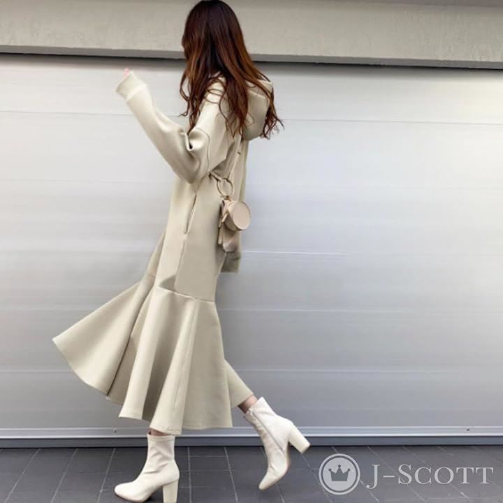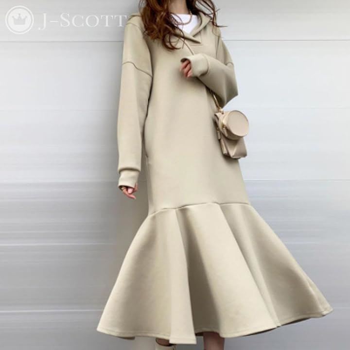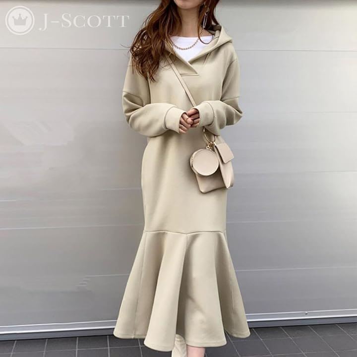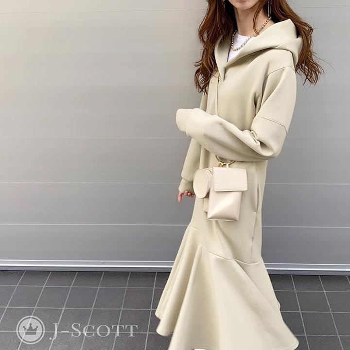 ジェイスコット ワンピース レディース マーメイド ミモレ丈 フード付き パーカー Vネック 長袖 ポケット付き