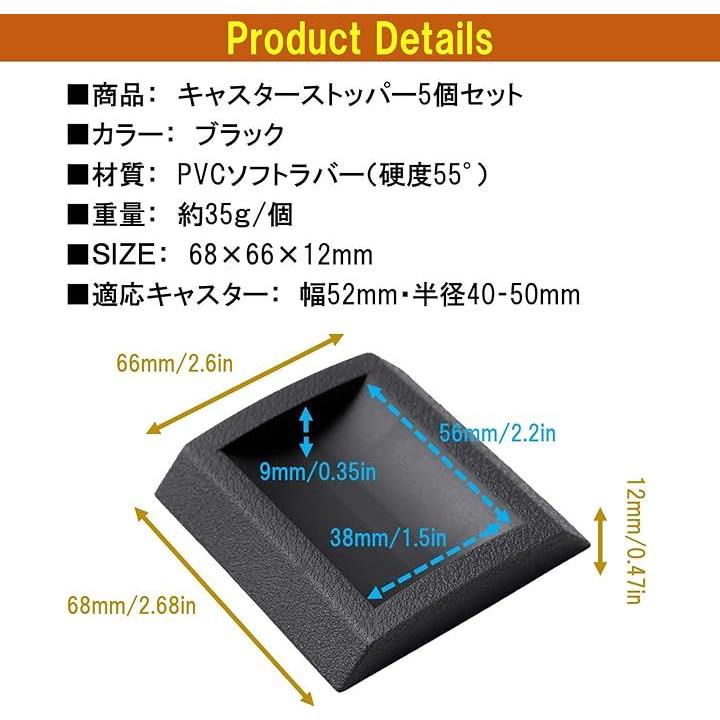互換品キャスター ストッパー ゴム 椅子 5個 ゲーミング チェア 固定 滑り 車輪 止め 汎用チェアマット ブラック