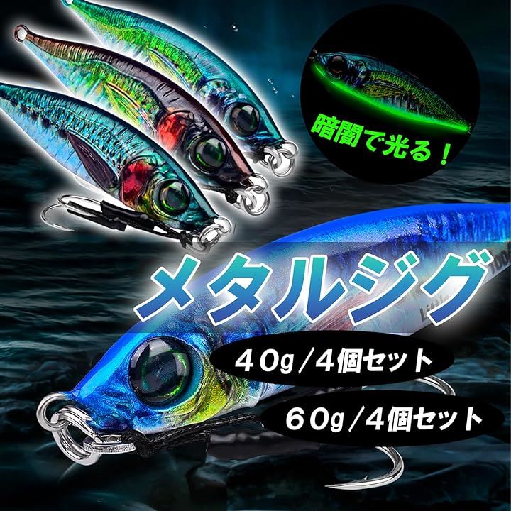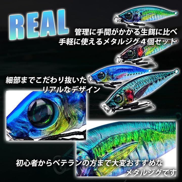 メタルジグ 4個セット ルアー ミノー ジギング リアルジグ フック付 青物 釣具 ショアジギング 海釣り メバル