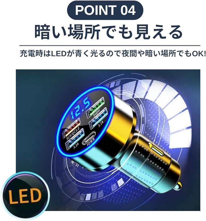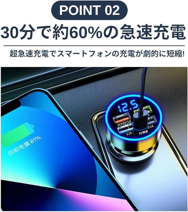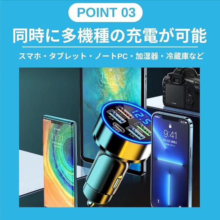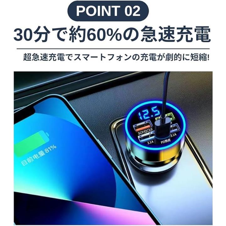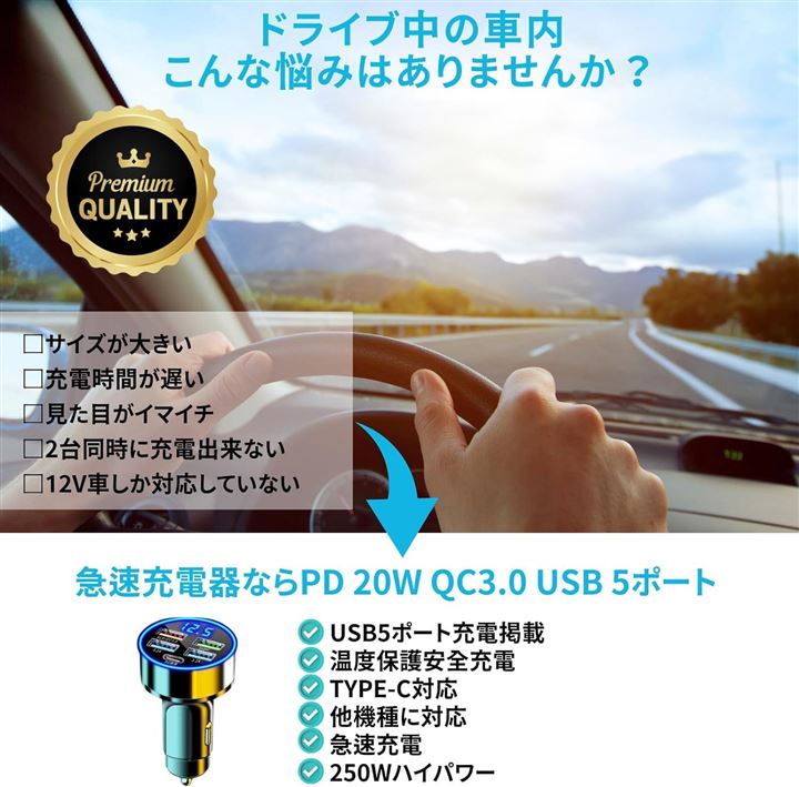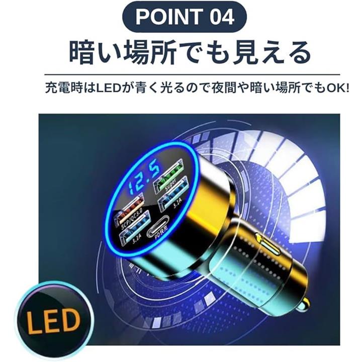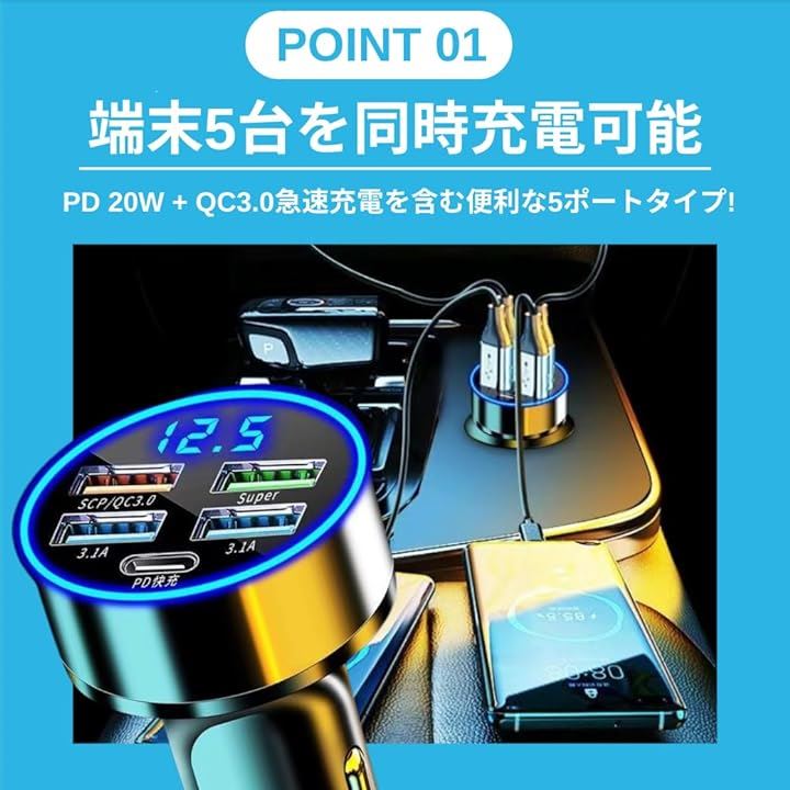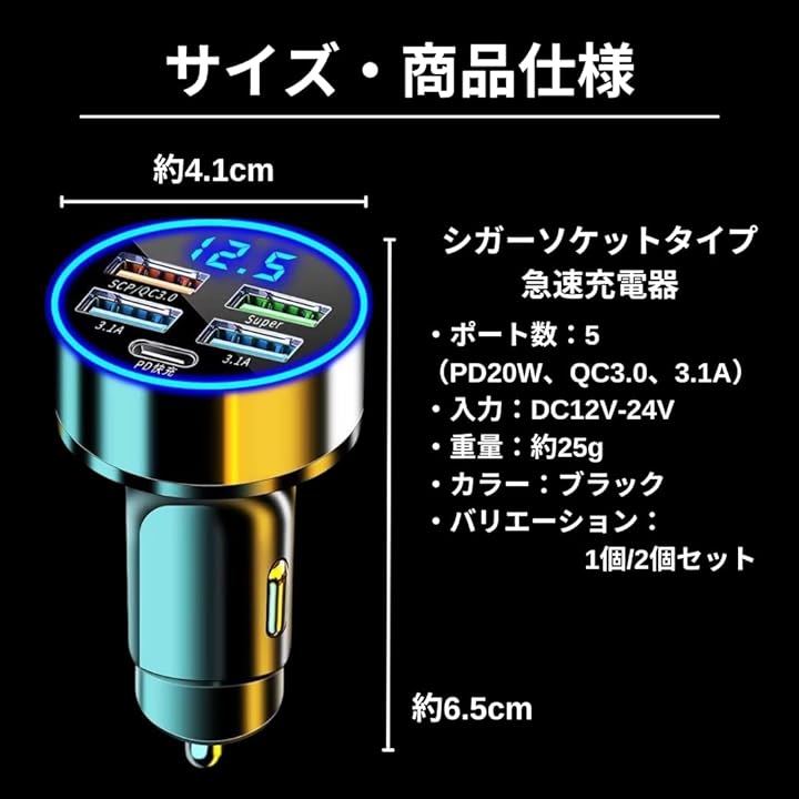 シガーソケット 充電器 増設 PD 20W QC3.0 USB 5ポート カーチャージャー 急速充電 スマホ充電 車 スマートフォン