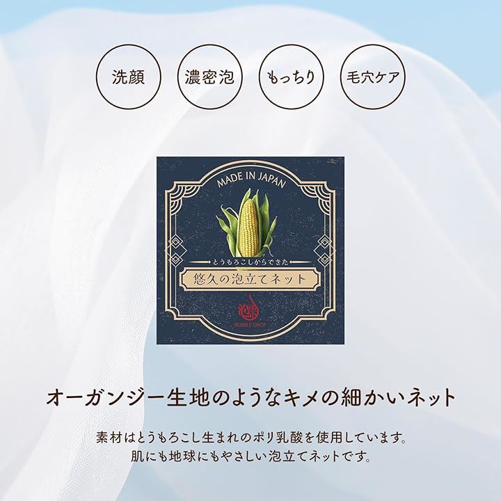 地球にやさしい とうもろこしからできた 悠久の泡立てネット 洗顔 濃密泡 もっちり 毛穴ケア 日本製