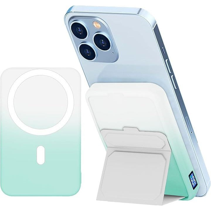 「互換品」LUCKYDUO Magsafeモバイルバッテリー マグネット10000mAh 大容量 急速充電 ワイヤレス モバイルバッテリー折りたたみ式スタンド 「15W ワイヤレス充電/22.5W USB 出力/PD対応」3台同時充電 持ち運び便利 PSE認証済み 日本語取扱書付き(グラデーション・グリーン) |