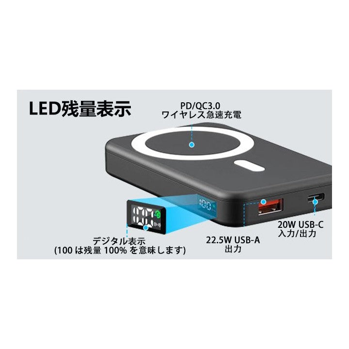 「互換品」LUCKYDUO Magsafeモバイルバッテリー マグネット10000mAh 大容量 急速充電 ワイヤレス モバイルバッテリー折りたたみ式スタンド 「15W ワイヤレス充電/22.5W USB 出力/PD対応」3台同時充電 持ち運び便利 PSE認証済み 日本語取扱書付き |