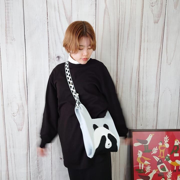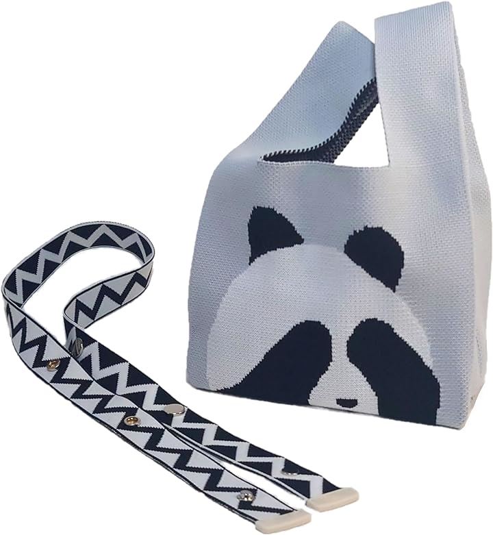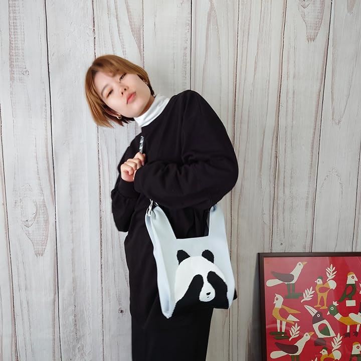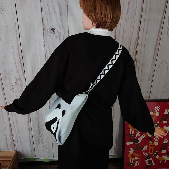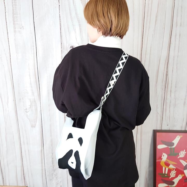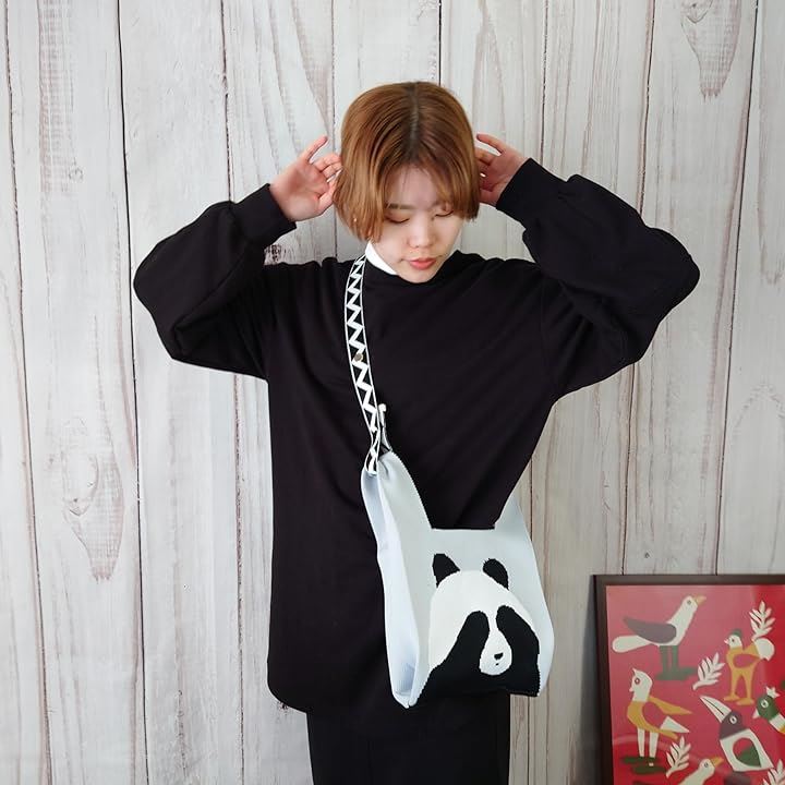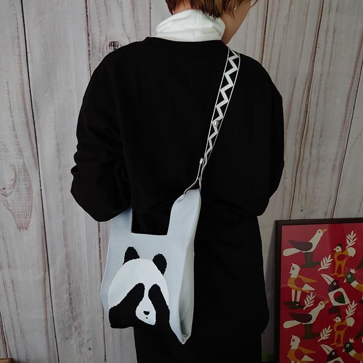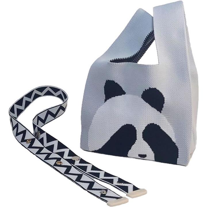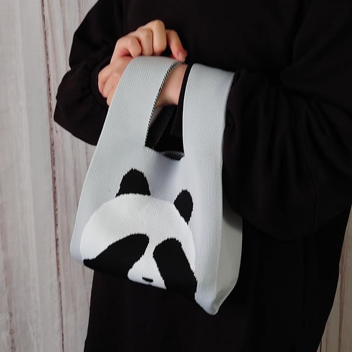 母の日 ニットバッグ 目隠しパンダ ショルダーベルト付き かわいい ショルダーバッグ グレー