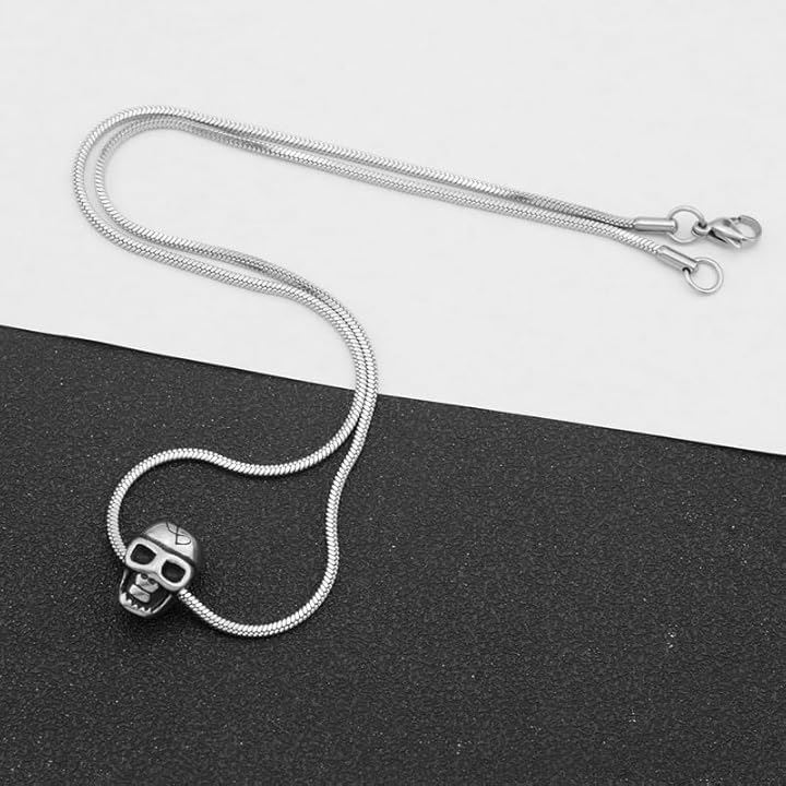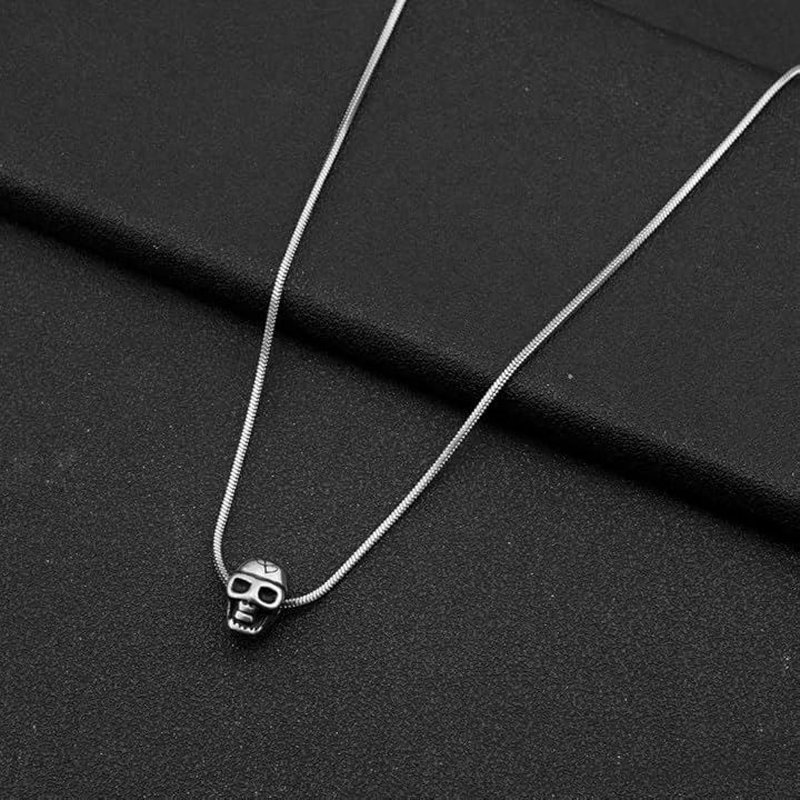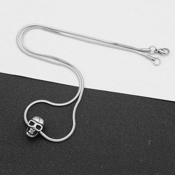 ネックレス メンズ ドクロ 骸骨 スカル 髑髏 ステンレス かっこいい 訳アリ 逆さトップ ワンポイント 無骨 お洒落チェーン 高見え