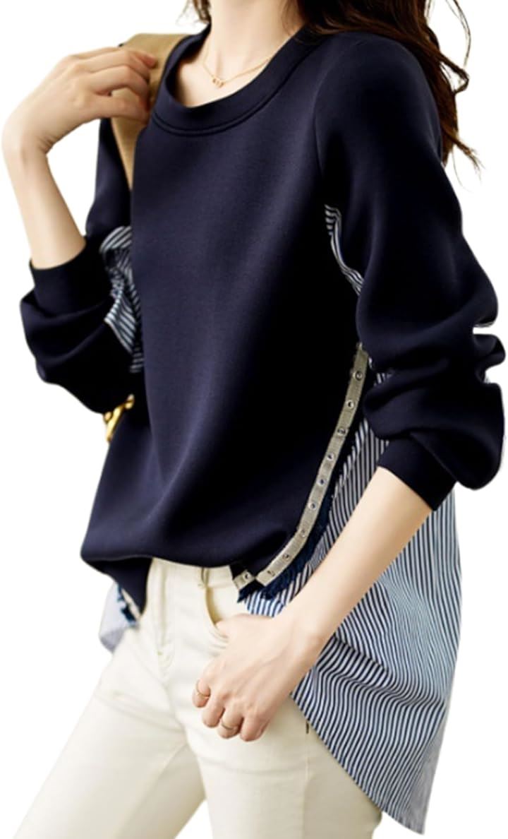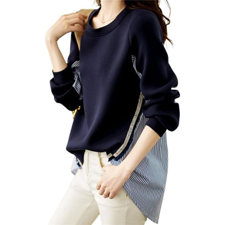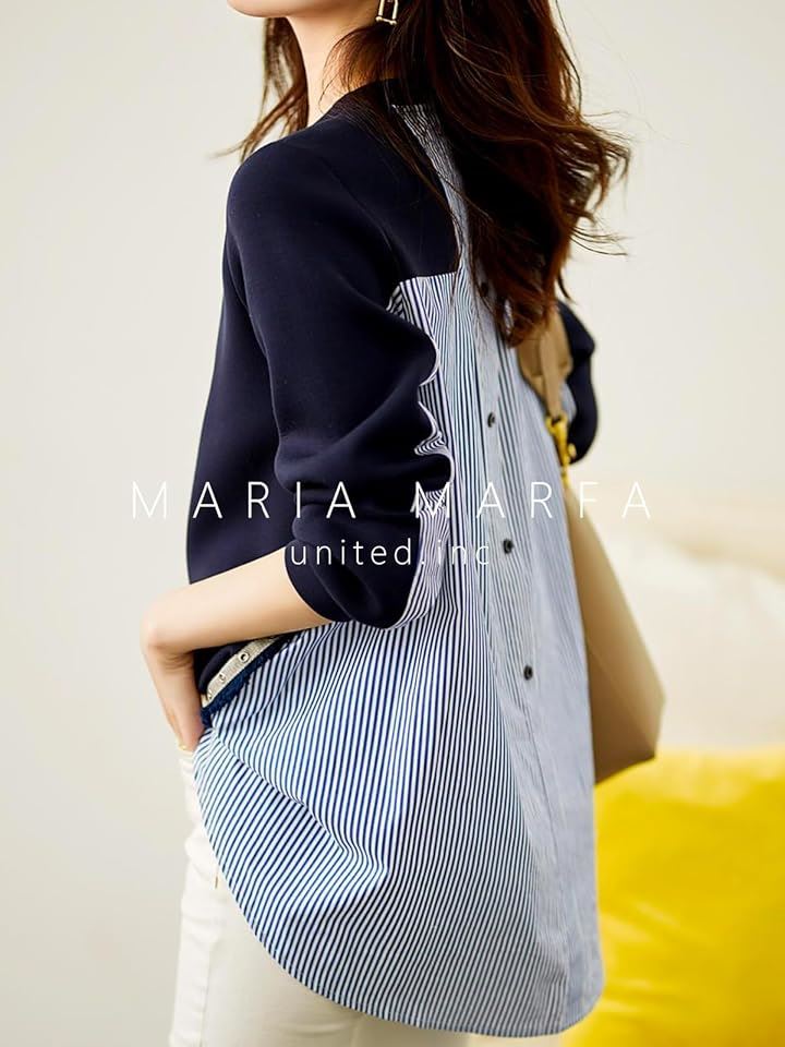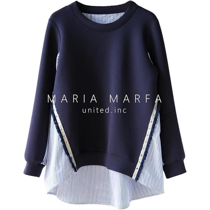[マリアマーファ] 異素材 スイッチ スウェット プルオーバー ブラウス ストライプ 春 夏 マタニティシャツ マタニティ ロンt お洒落 かわいい ゆるい 透けない ゆったり aライン 部屋着 デザインブラウス 個性的 エレガント 女子 可愛い uネック 薄い 4S-M01 |