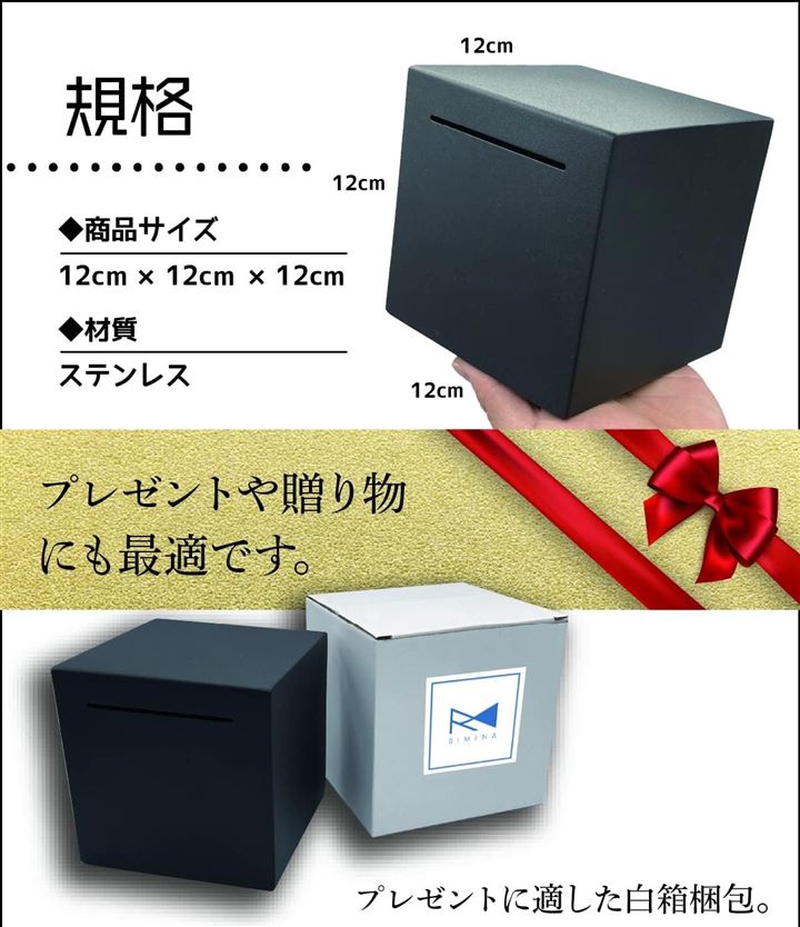 開かない貯金箱 おしゃれ 札 お札 ステンレス 大容量 正方形