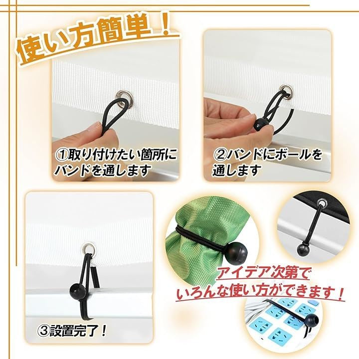 「簡単で使いやすい」使い方はとっても簡単。ハトメ(穴)に通してボールに引っ掛けるだけ。簡単で早くで使いやすいので、ちょっとした固定にも仮留めにも幅広く使えてしまいます。