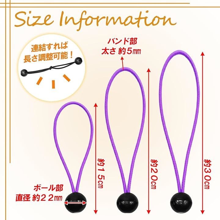 karim ゴム バンド 荷物 固定 トラック 荷台シート ボール止め ゴバンジーコード テント タープ用 ボールバンジー ゴム紐 紫 20cm 10個セット (パープル20cm10本セット) |