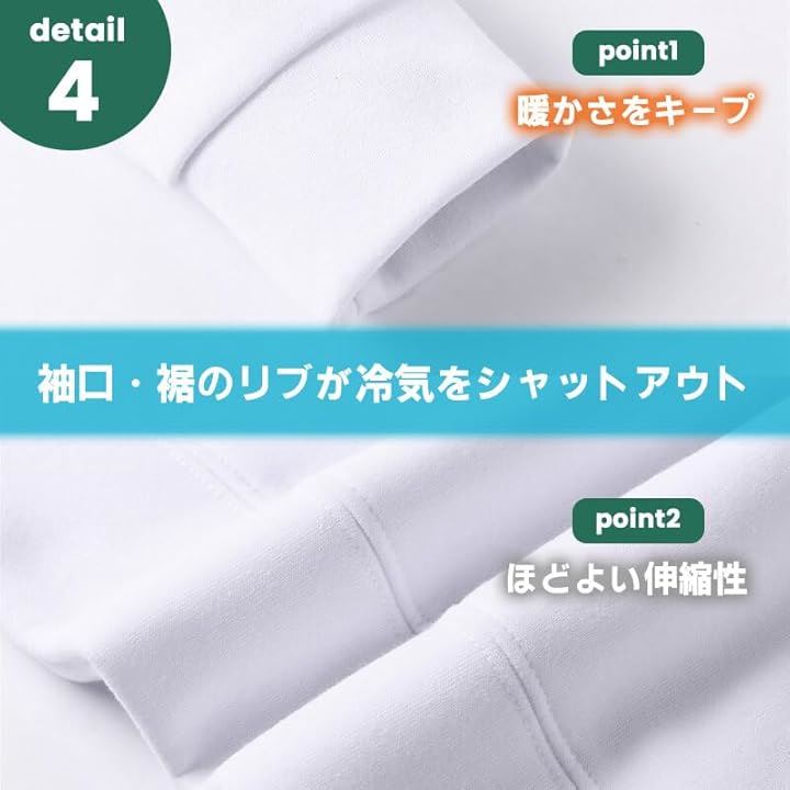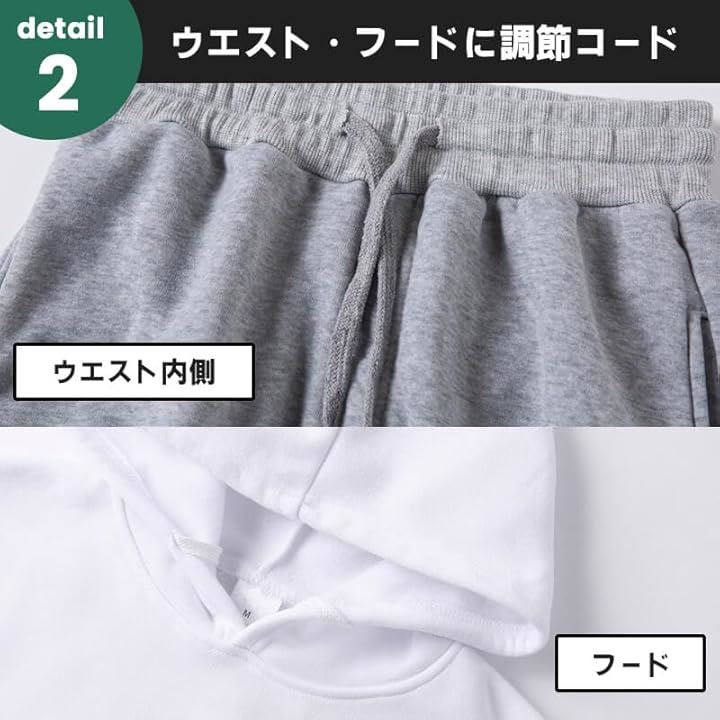 「素材と快適さ」 100%ポリエステル素材を使用しており、柔らかく肌触りの良いスウェット生地が特徴です。