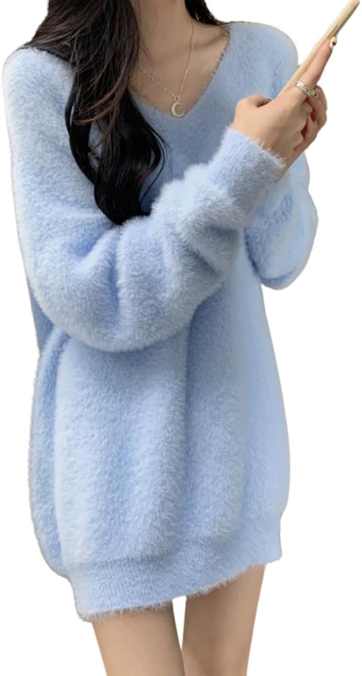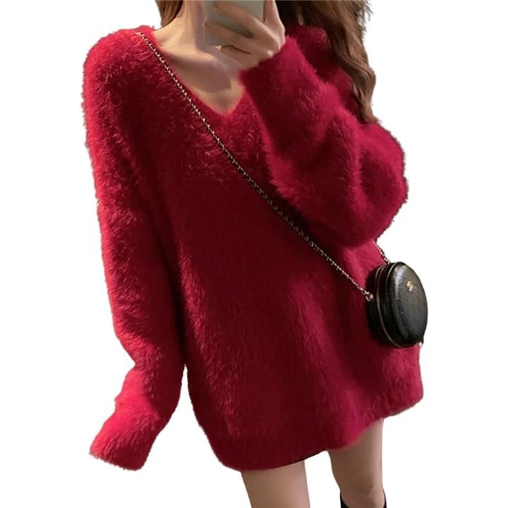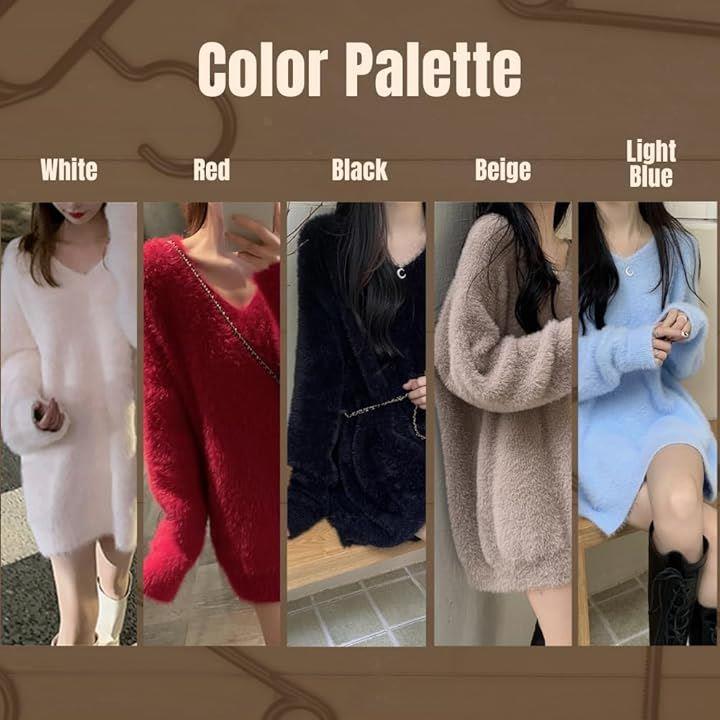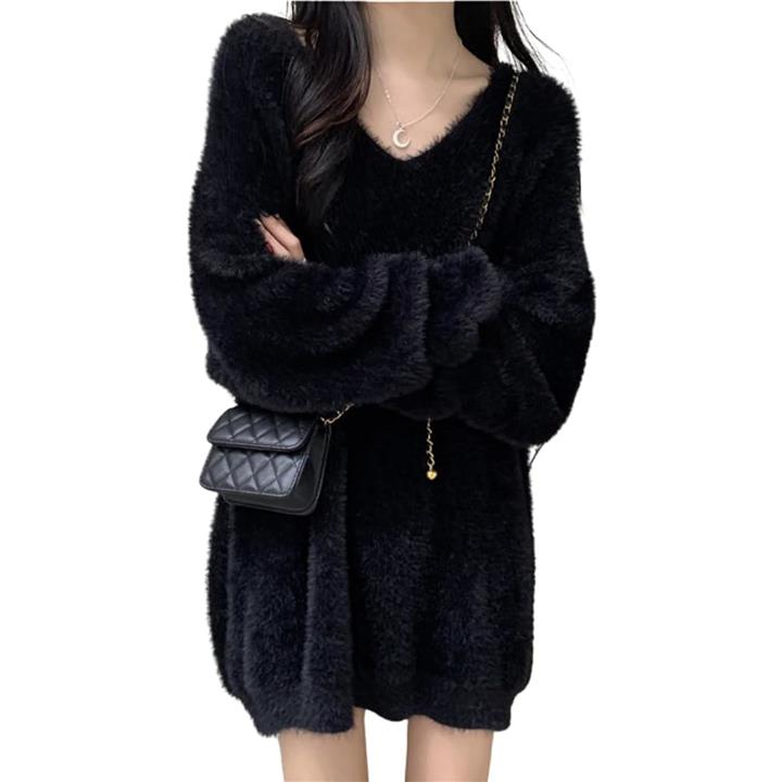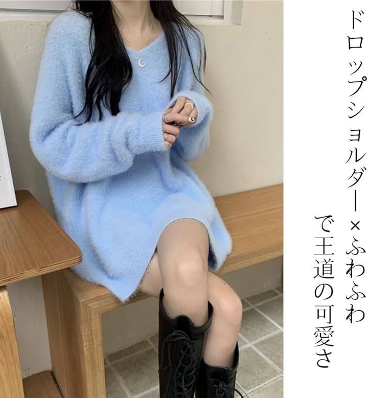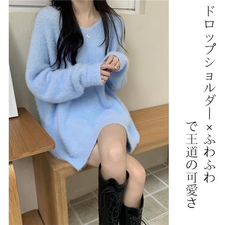 ドロップショルダー ニット Vネック ワンピース ミニ ふわふわ フリーサイズ ゆったり オフショル 韓国ファッション セーター