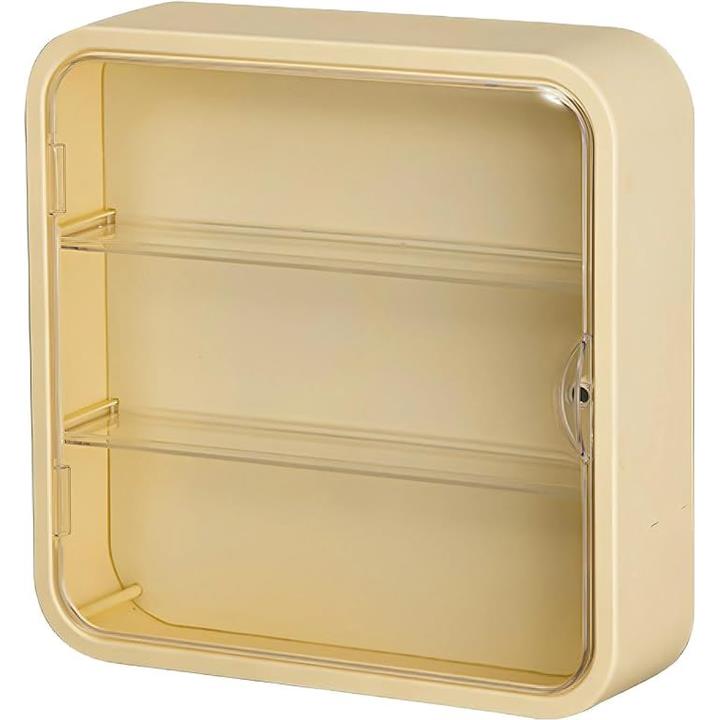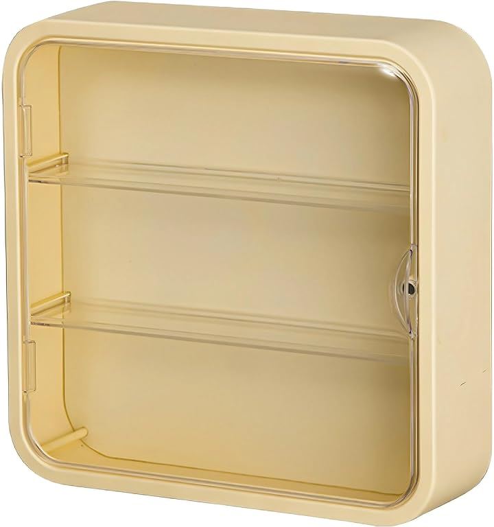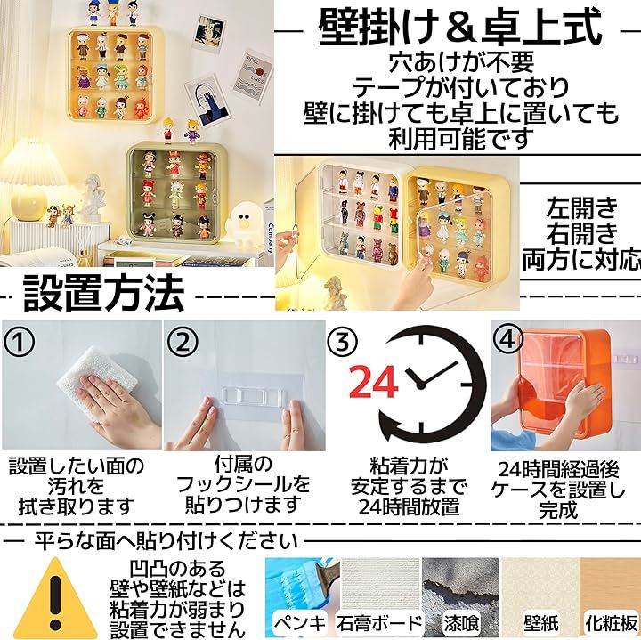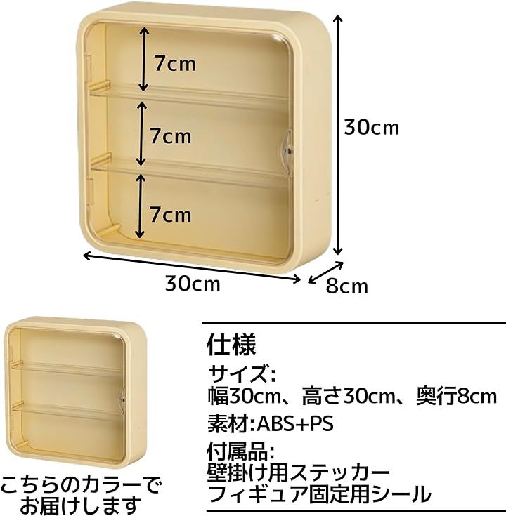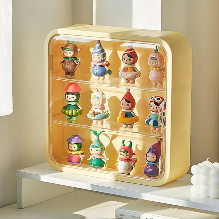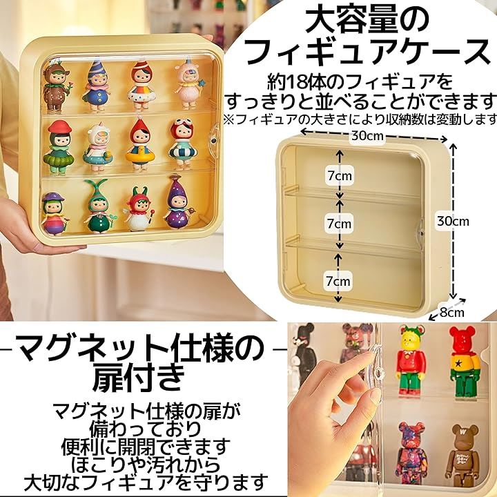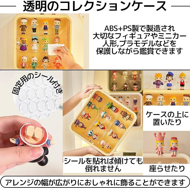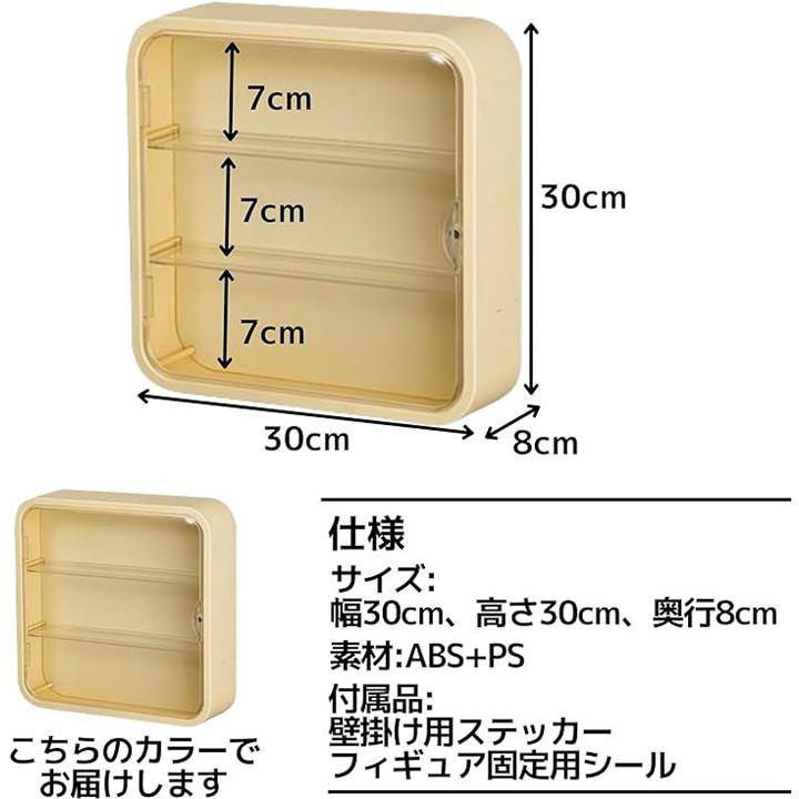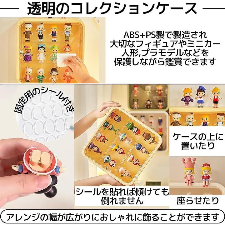 フィギュアケース コレクションケース ディスプレイケース 壁掛け 卓上 収納 3段 扉付き イエロー