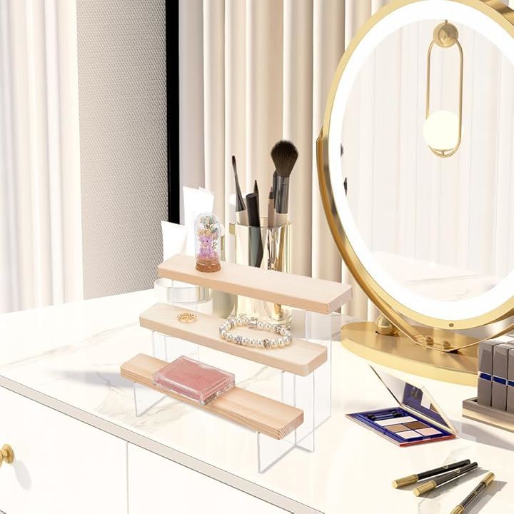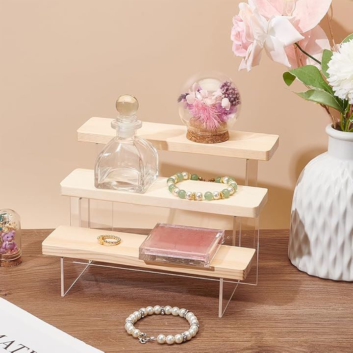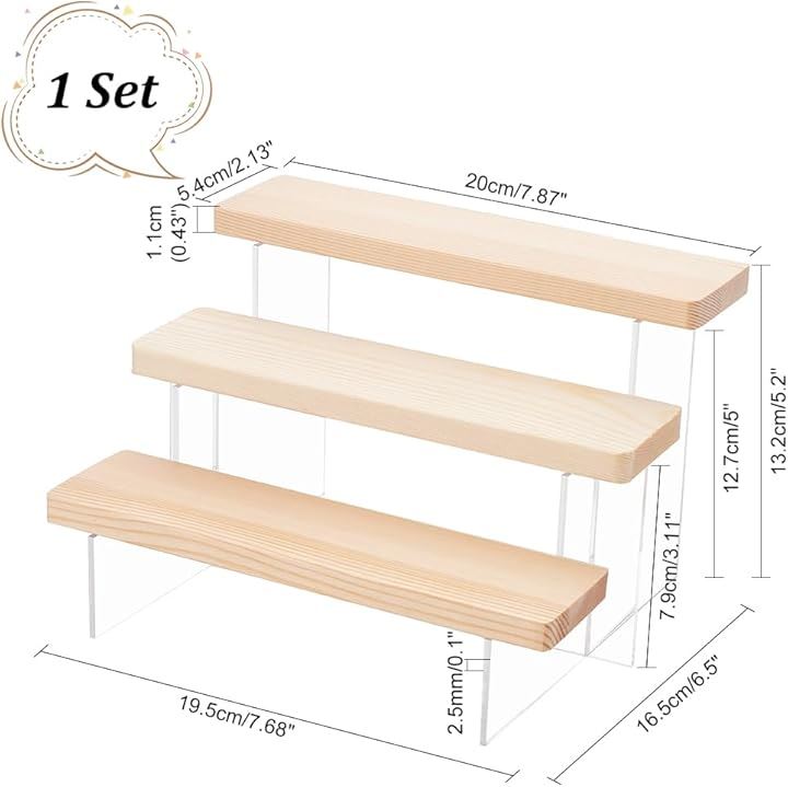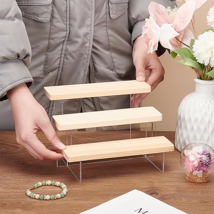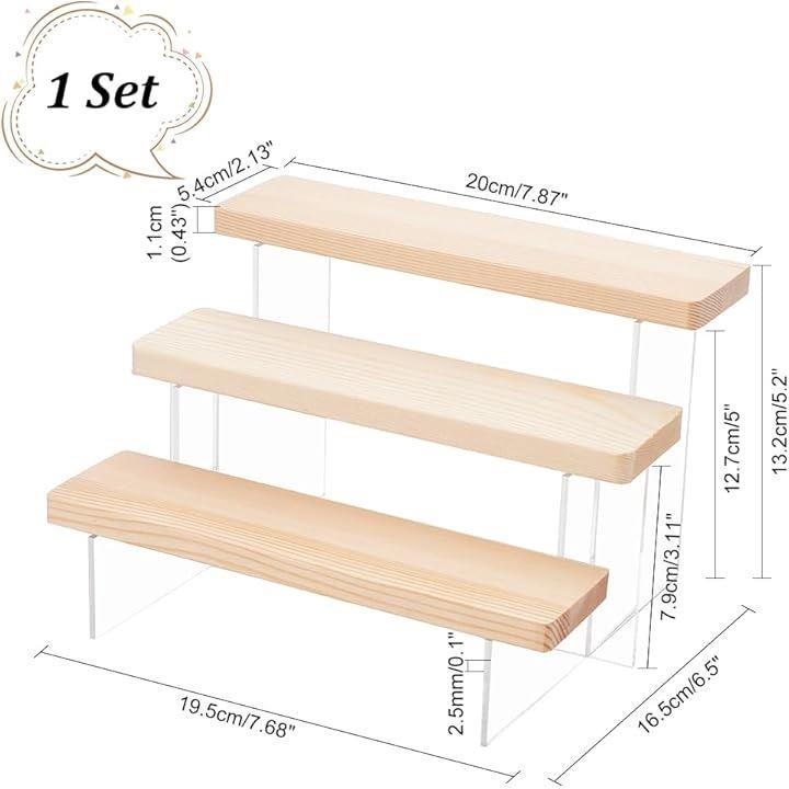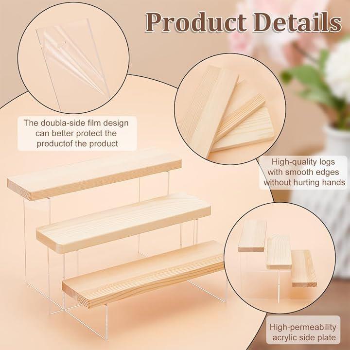 3段 ディスプレイスタンド 木製 フィギュアディスプレイステージ アクリル 展示用 立体 透明 おしゃれ 多層ディスプレイスタンド 収納ラック フィギュアスタンド 階段状のデザイン 化粧品スタンド 薄色
