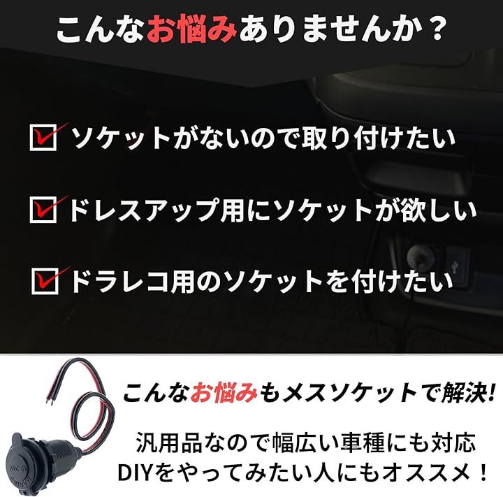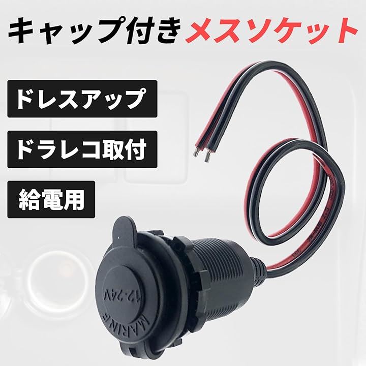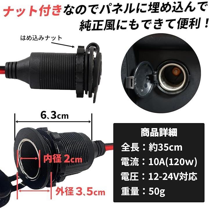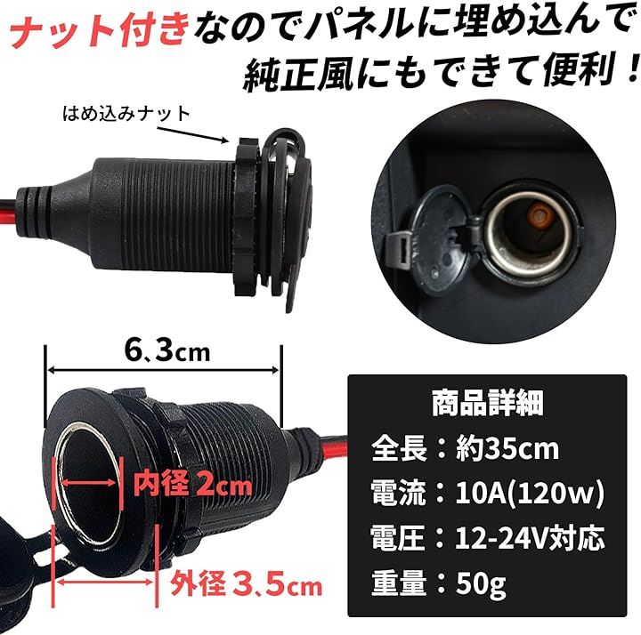 互換品 シガーソケット メス 蓋付き 充電器 電源 ケーブル キャップ付き 12-24V 35cm シガーライター アダプター コネクタ 車