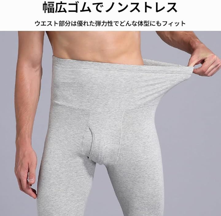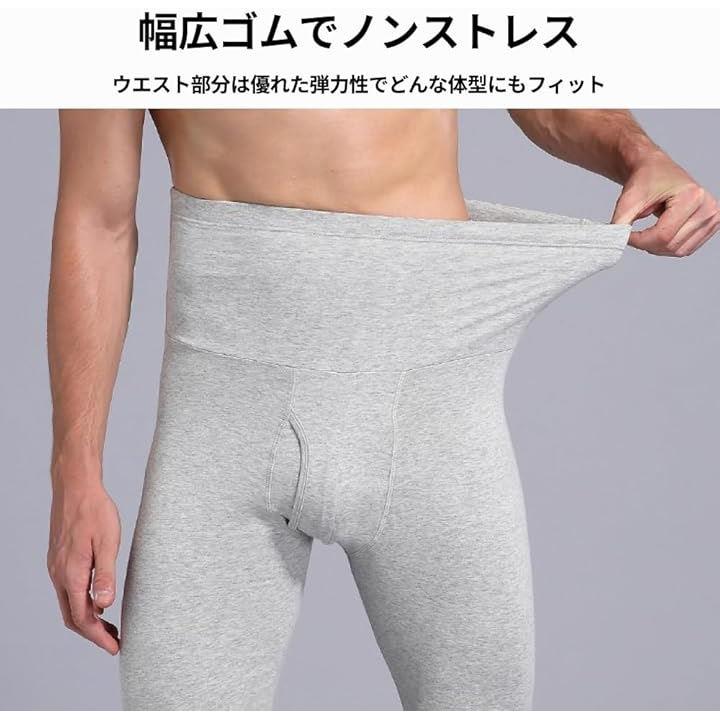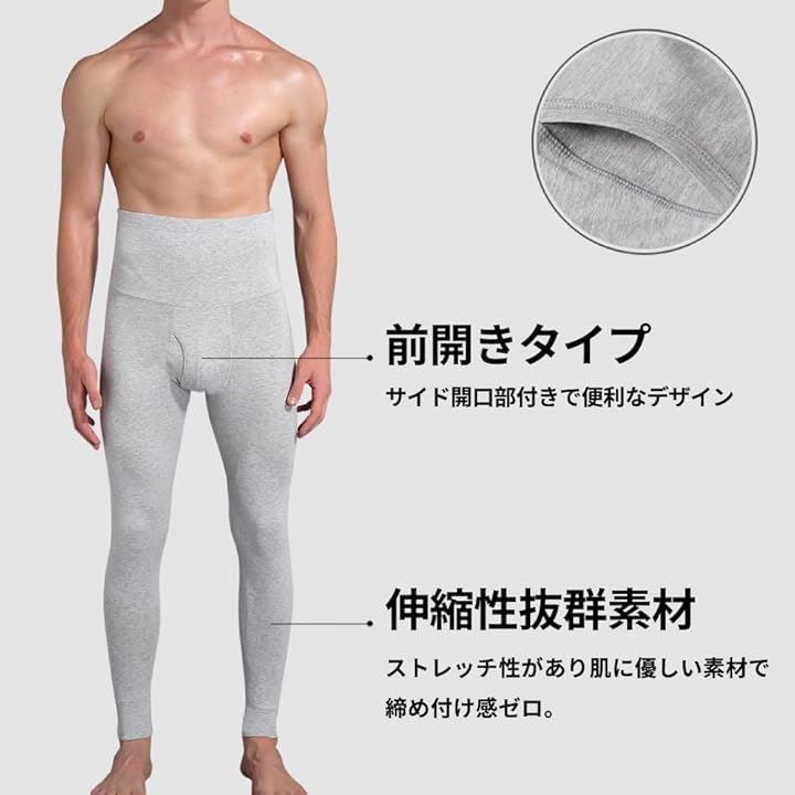 腹巻付き ロングタイツ メンズ 前開き ストレッチ フルレングス フィット ウエストゴム 大きいサイズ インナー アンダーウェア 下着 10分丈 シンプル あたたかい ぬくぬく 保温性 秋冬