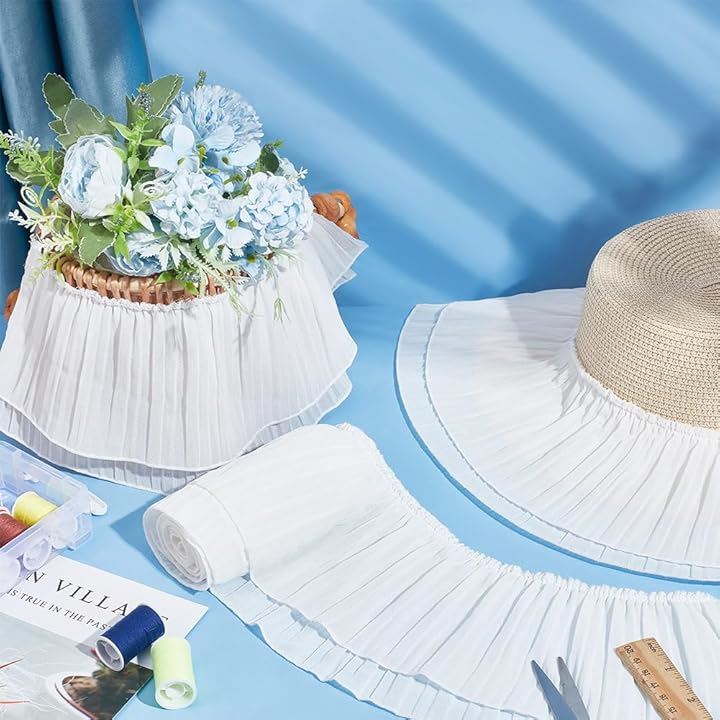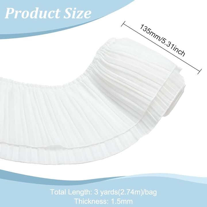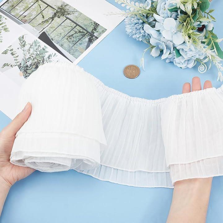 約2.7m レーストリム フリルトリム 幅約135mm シフォン ポリエステル フリルレースリボン 飾りレース DIY服 カーテン用 工芸品 手作り ドレス