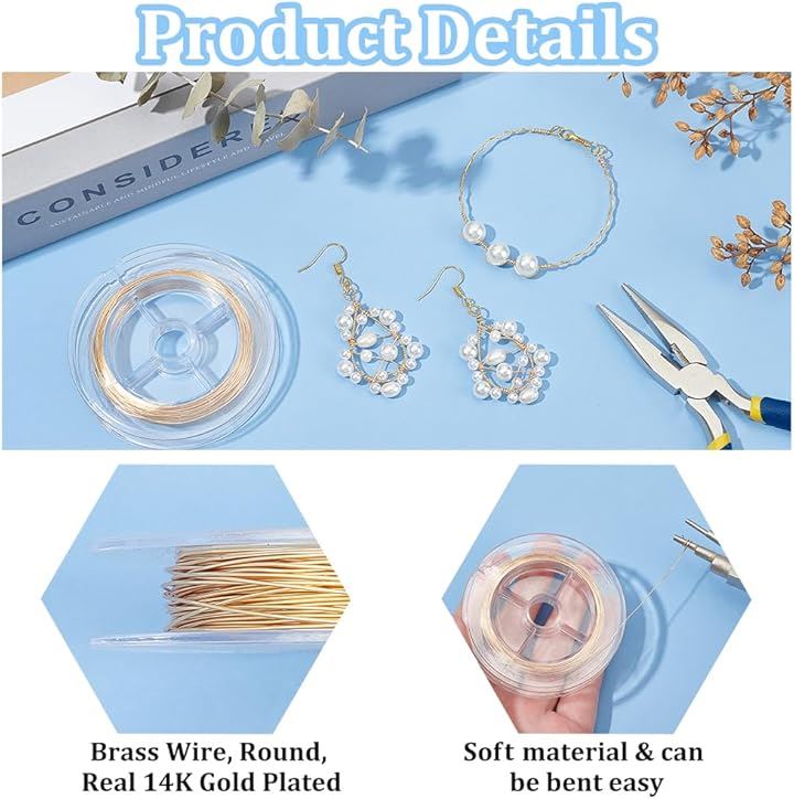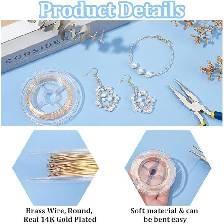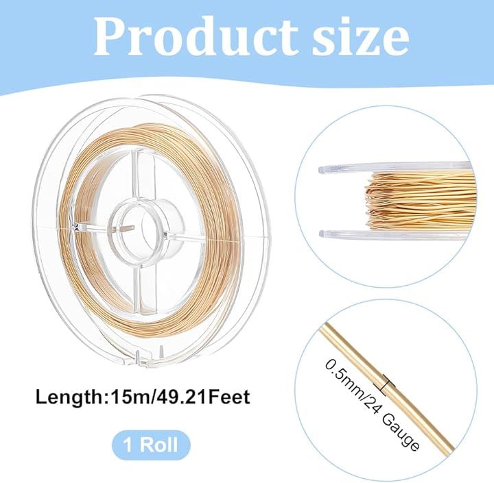15m/巻 カッパーワイヤー 丸型 真鍮ワイヤー 14Kゴールドメッキ アクセサリーワイヤー アートワイヤー DIYジュエリー クラフト銅線 ジュエリー作り 手芸素材