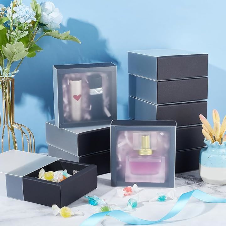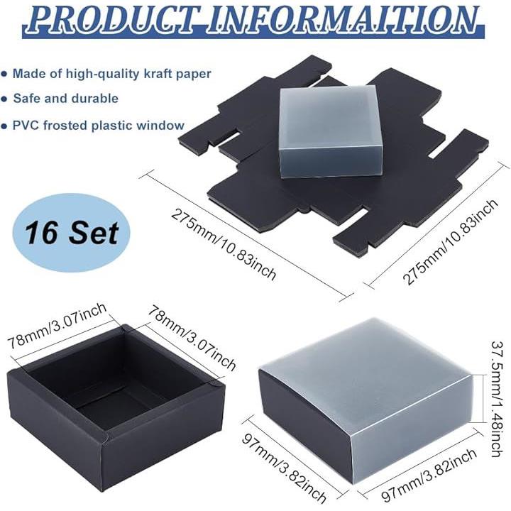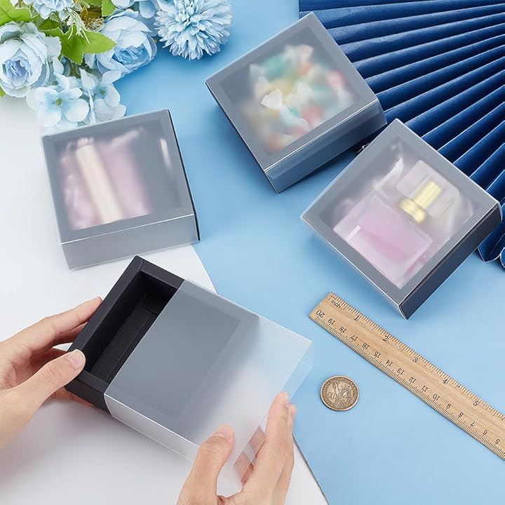16セット ギフトボックス クラフト紙ボックス 引き出しボックス 半透明プラスチックカバー 厚紙 ラッピング用 結婚式 アクセサリー プレゼントボックス