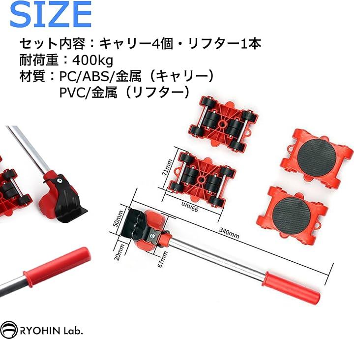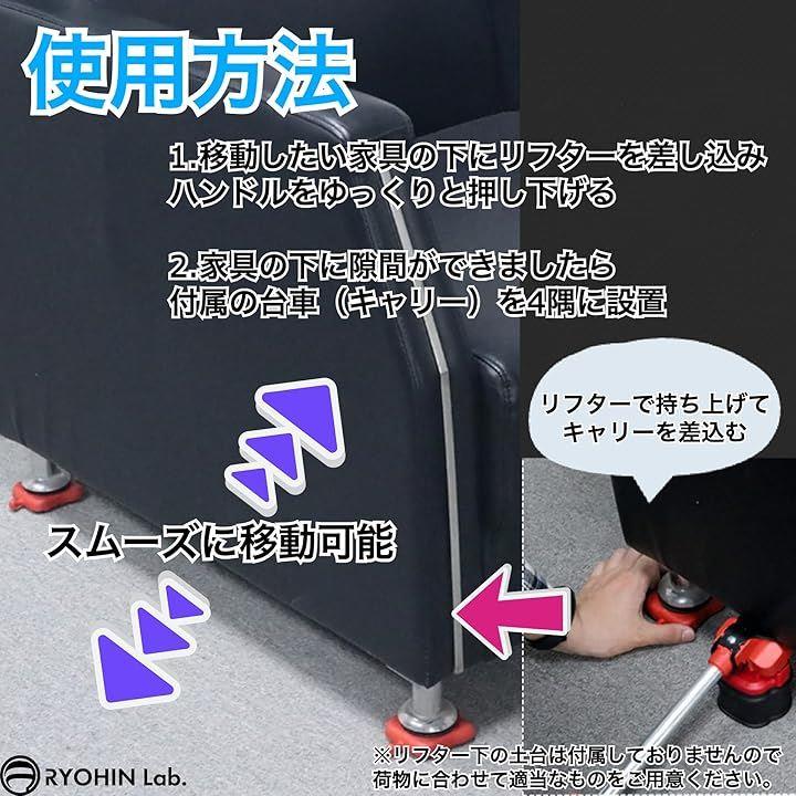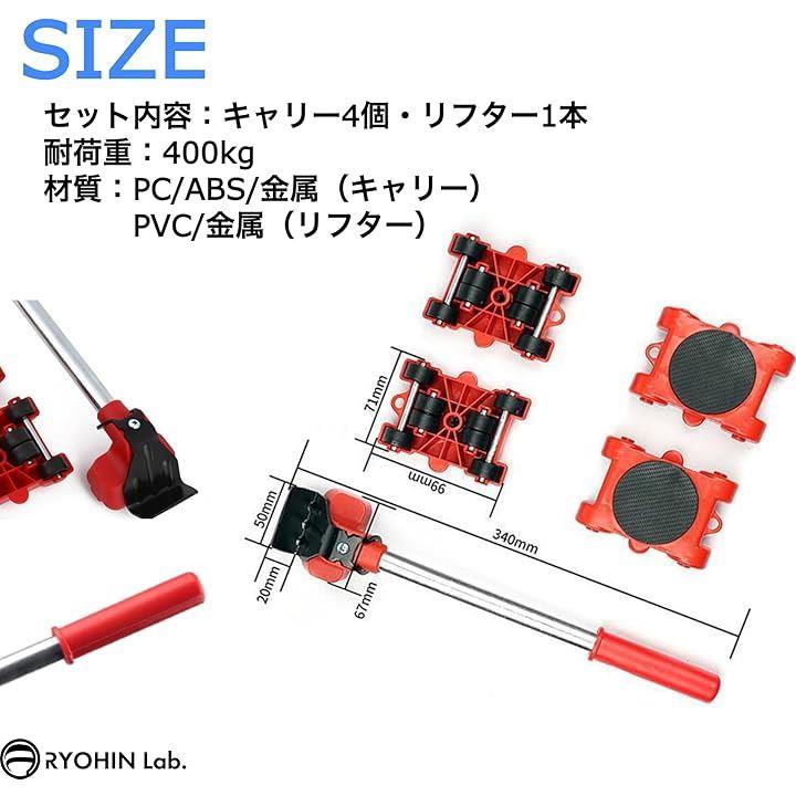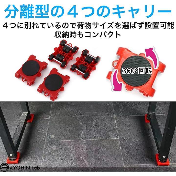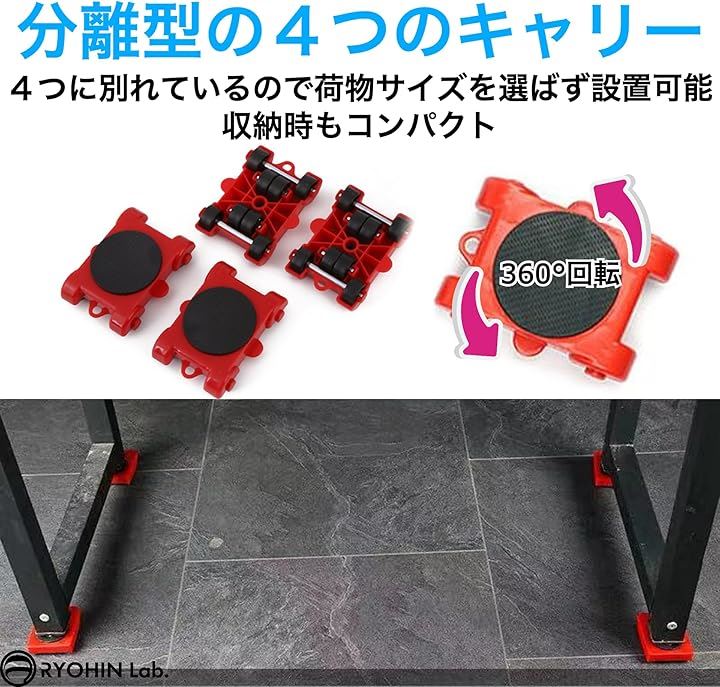 良品ラボ 移動キャリー キャスター 360度回転 リフター付 台車 耐荷重400kg 重量物移動 引越し 負荷軽減 1セット