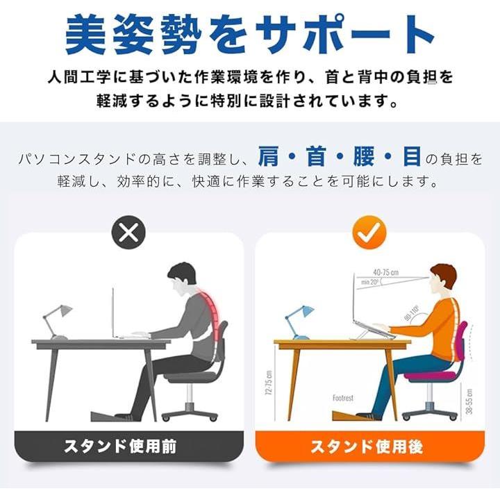 ノートパソコンスタンド PCスタンド 折畳み 持ち運び 高さ調整 角度調整