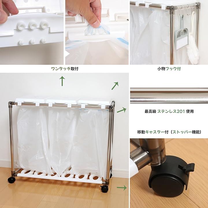 30Lx3分別 ゴミ箱 ゴミ袋ホルダー 20L-30L可 塵袋ホルダー ゴミ袋スタンド キャスター付き ダストボックス 分別シール付 特典:30Lのゴミ袋15枚おまけ