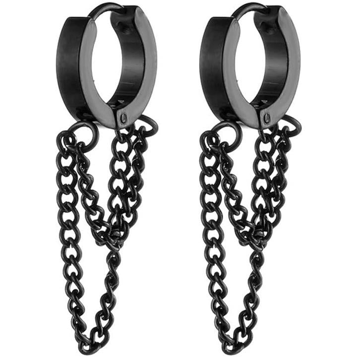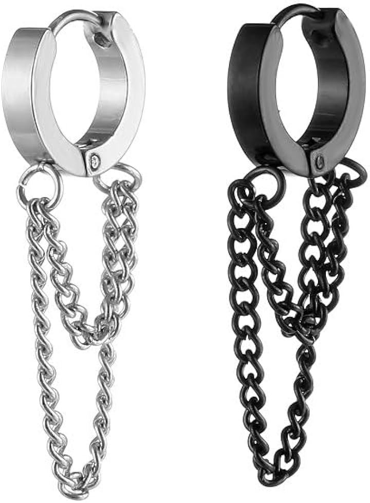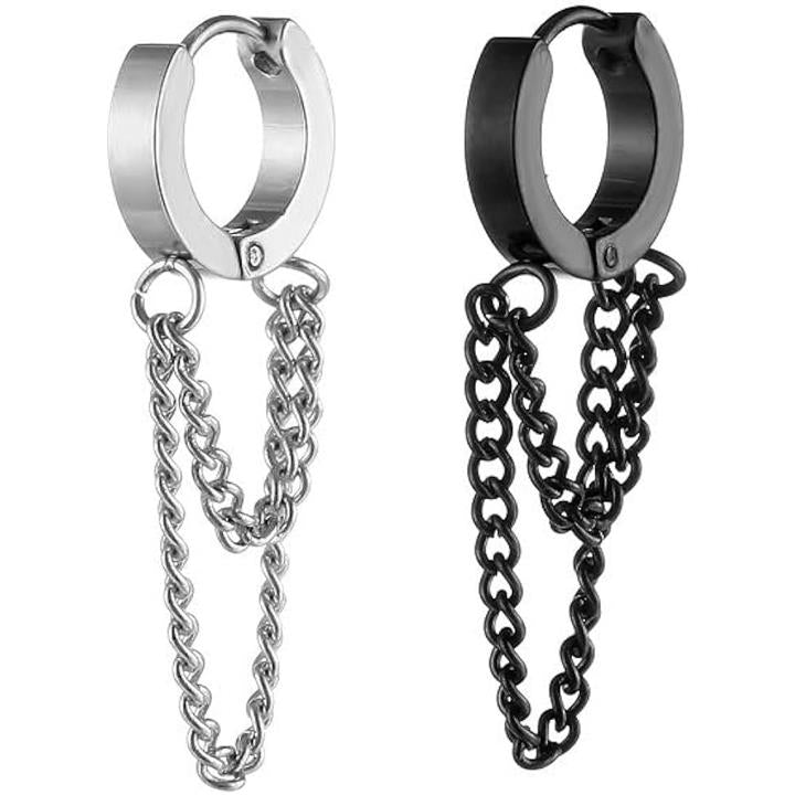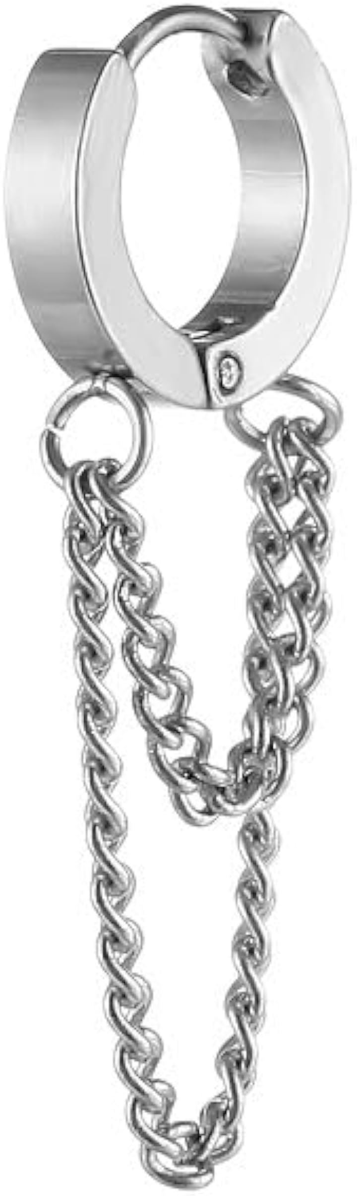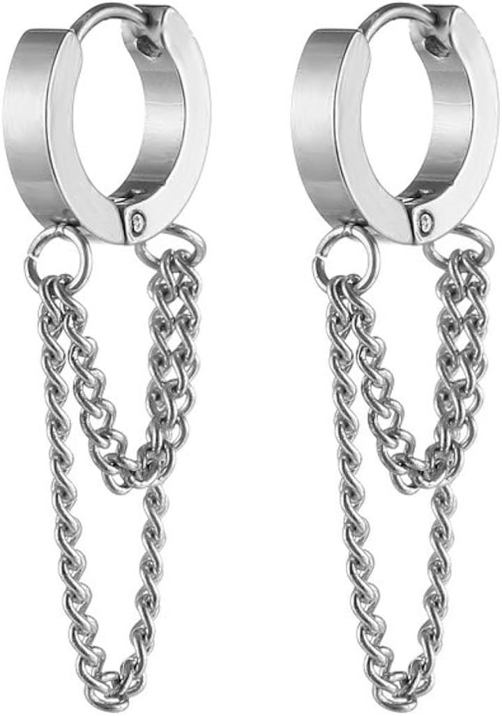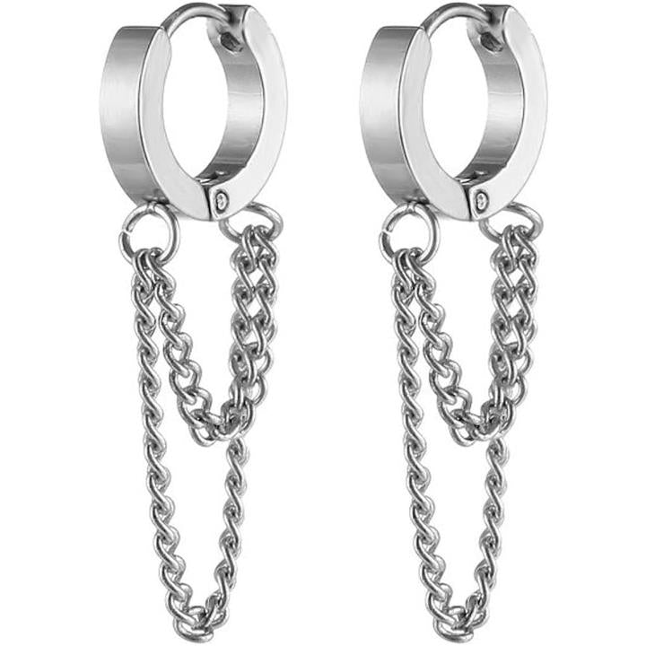 ピアス 垂れ下がりチェーン 二連チェーン シンプル お洒落 フープ リング レディース 高見え 揺れる 人気アクセサリー