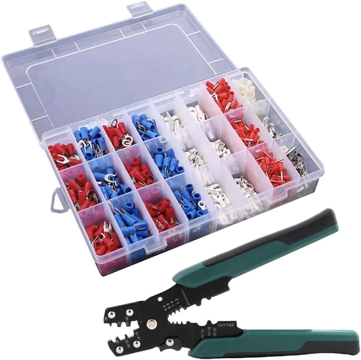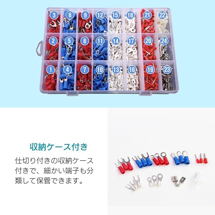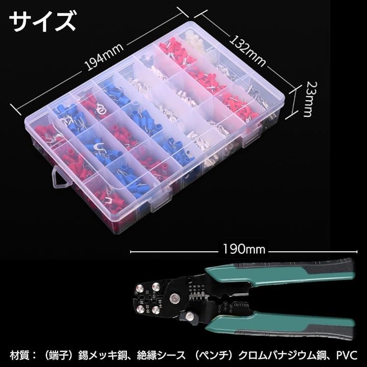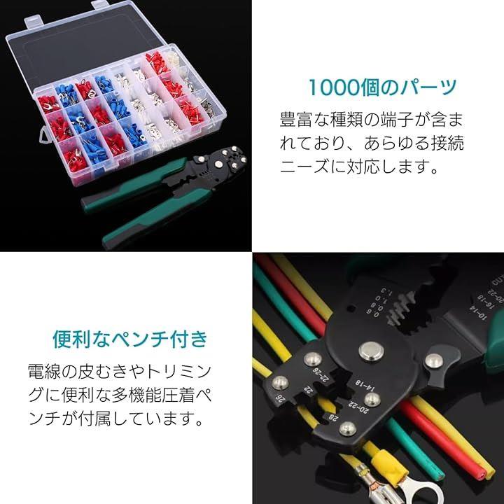 圧着端子セット 1000個 ワイヤコネクター 接続端子キット 圧着ペンチ付き Y形端子 R形端子 丸形端子