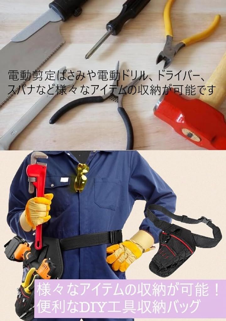 電動剪定ばさみバッグ 電動工具 収納ケース ウエストバッグ ツールケース 園芸 持ち運び 長さ調節可能