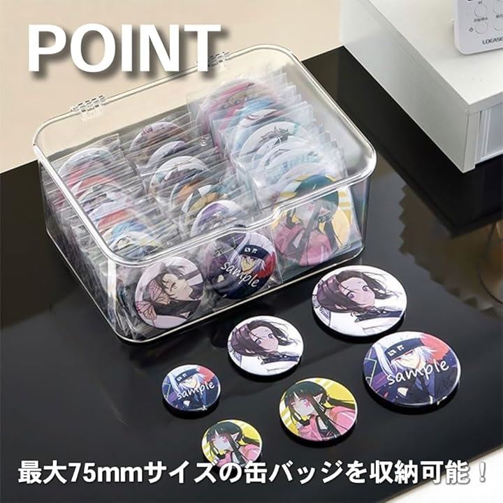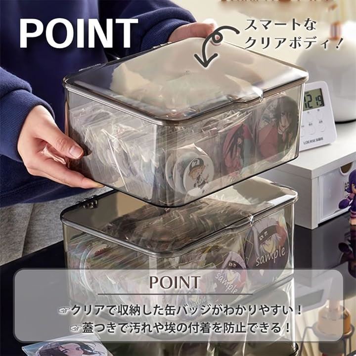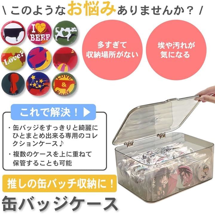 AllBright 缶バッチケース 大容量 蓋付き クリア 収納 保管 保護 推し活 アニメグッズ グレー