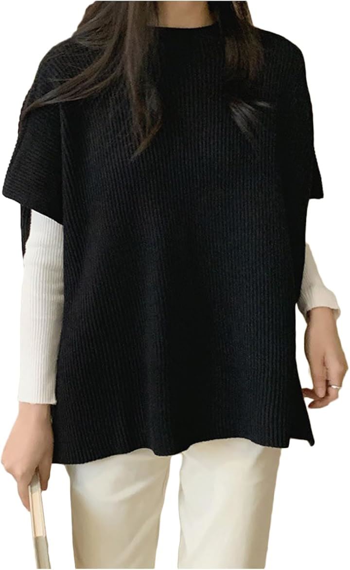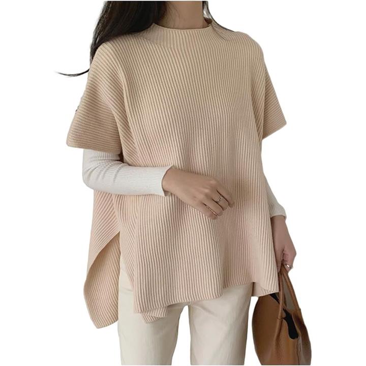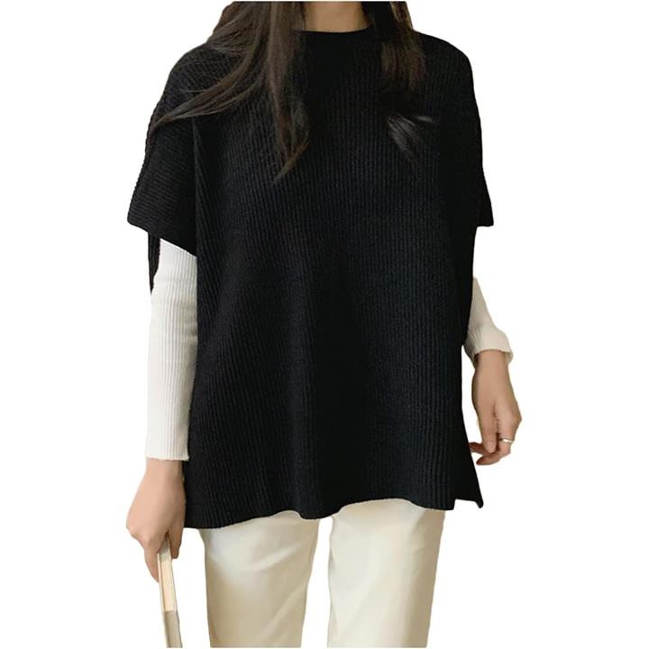ニットベスト レディース 秋冬 仕事 リブニット トップス 半袖 春 カットソー カラーニット ニットソー セーター ニットセーター薄手 薄手ニット 無地 体型カバー