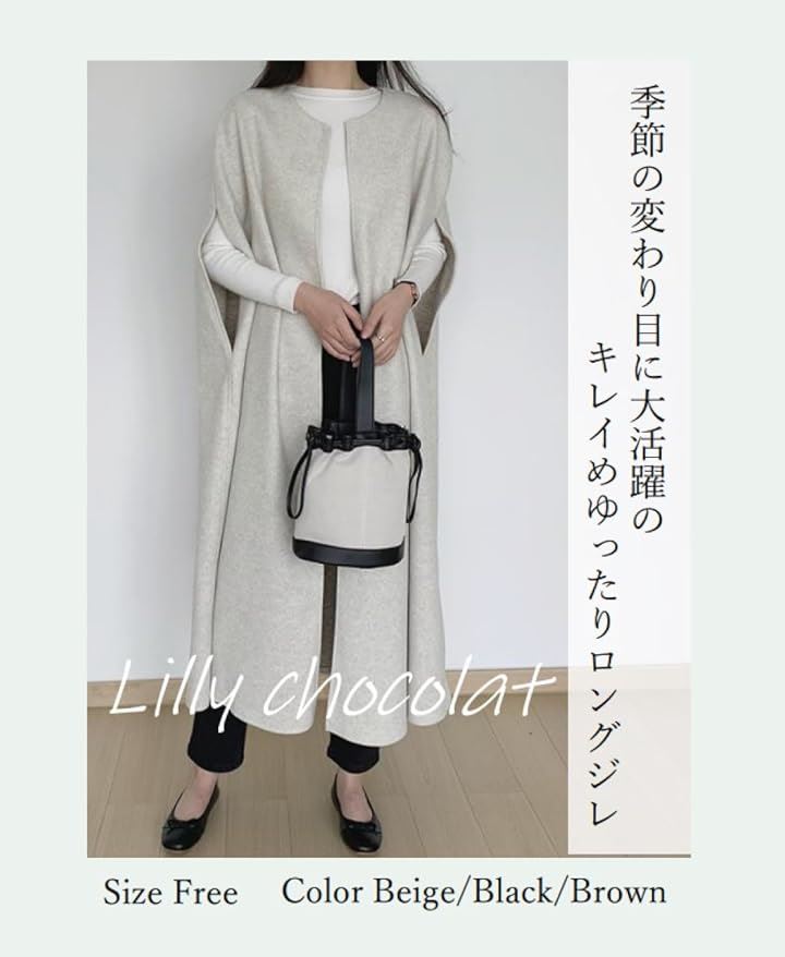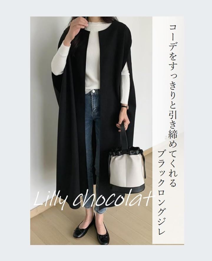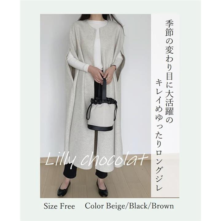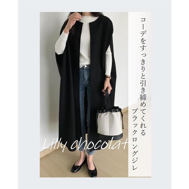 ロングジレ レディース 秋冬 ポンチョ ロングベスト 上着 アウター 羽織りもの オフィス カジュアル