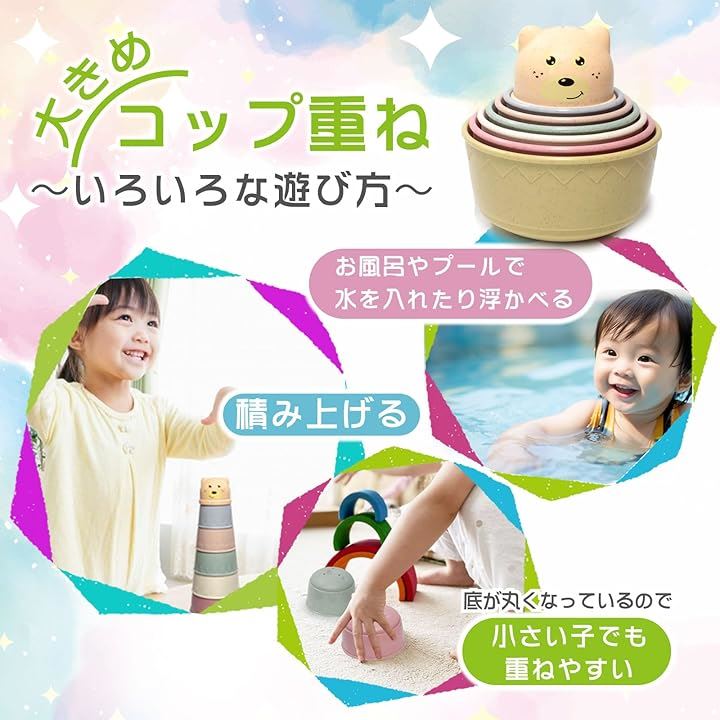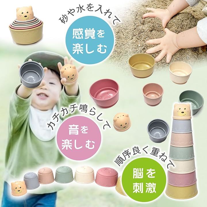 保育士監修 コップがさね スタッキングカップ かさねやすい お風呂 砂場 赤ちゃんコップ