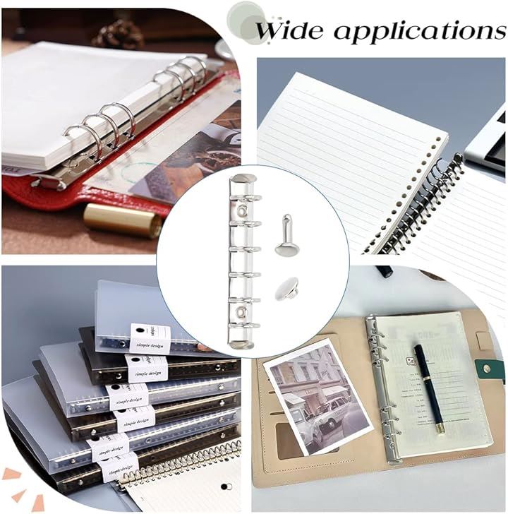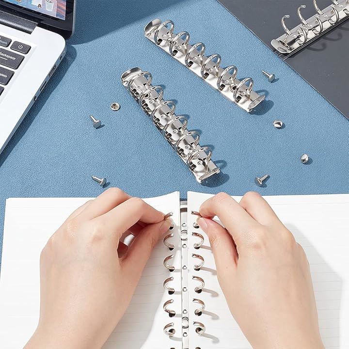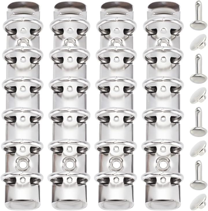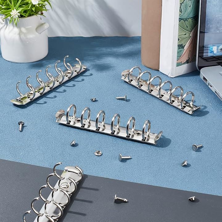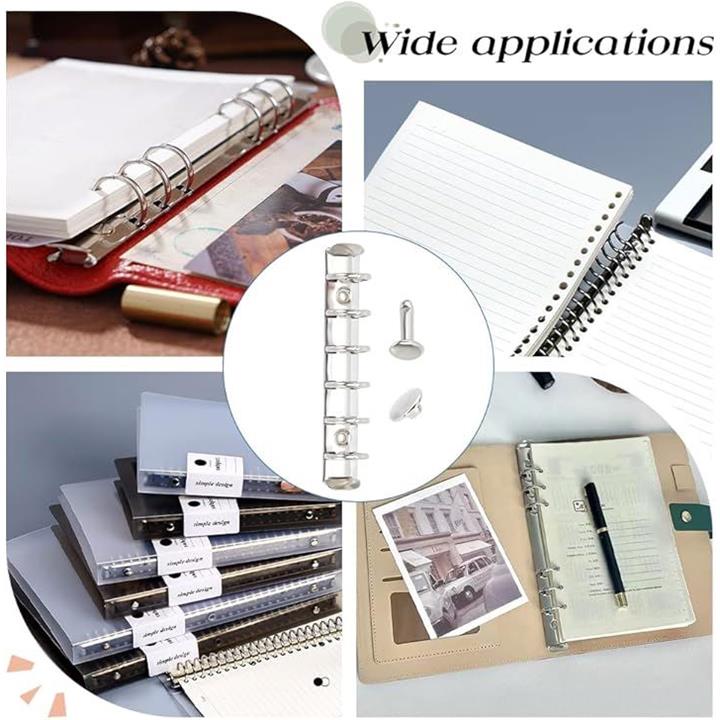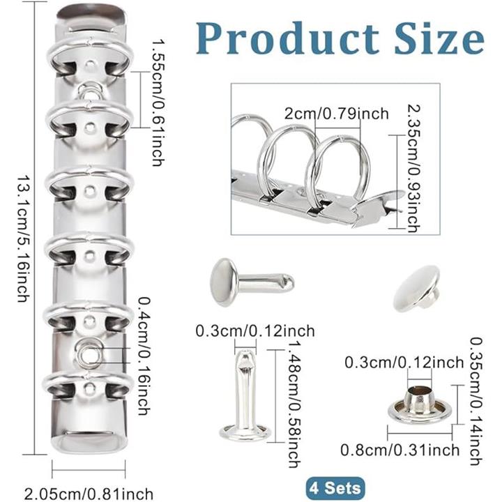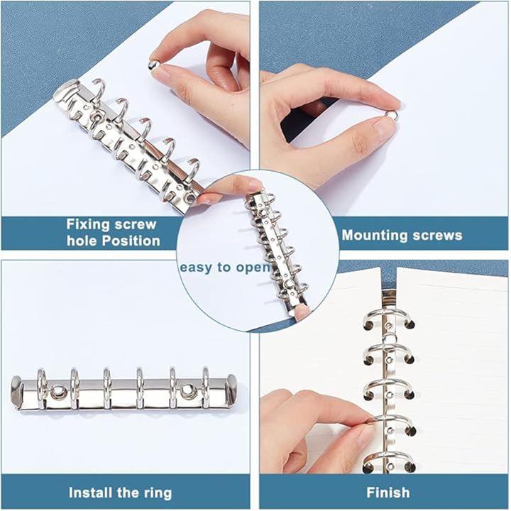 4個入り 6穴A4リングバインダー機構 ネジ付き交換キット ステンレススチールカラー 金属製ルーズリーフバインダー機構 綴じ込みリング ルーズリーフ・ノート・バインダー・スケジュール帳用