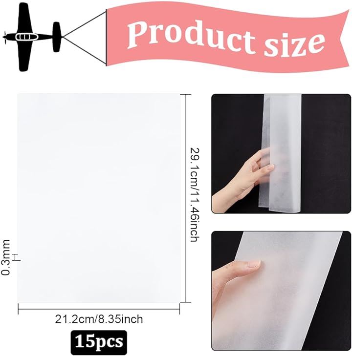 互換品15枚 シュリンクプラスチックシート 半透明の熱収縮フィルムシート アートクラフト シュリンクペーパー キーチェン製作アクセサリー 21x29cm/8.3x11.45インチ