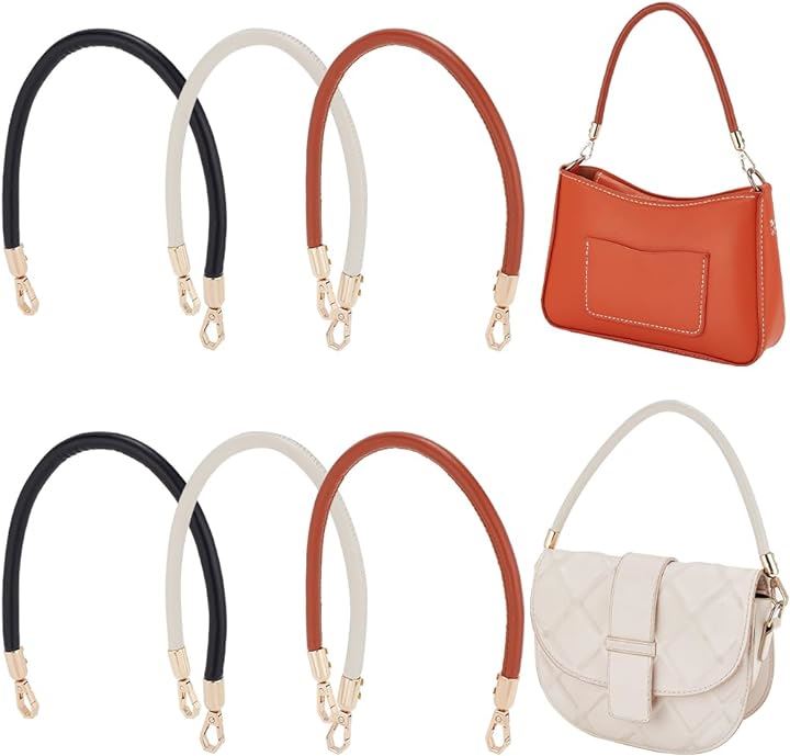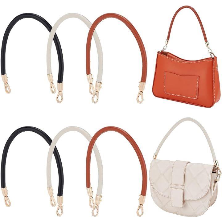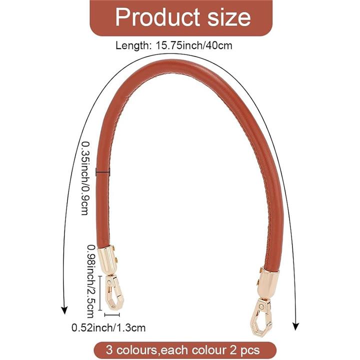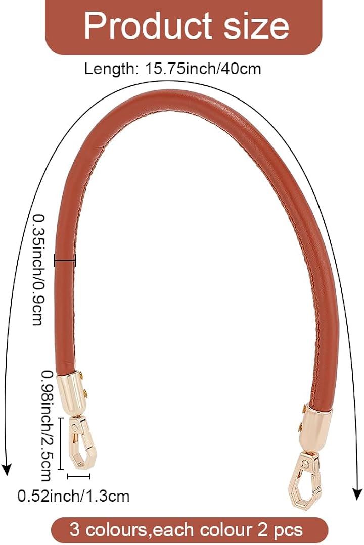 3色 PU レザー パース ストラップ 40cm 円形 ロープ ハンドバッグ クラッチバッグ 持ち手 スナップクラスプ付き DIY 交換 アクセサリー