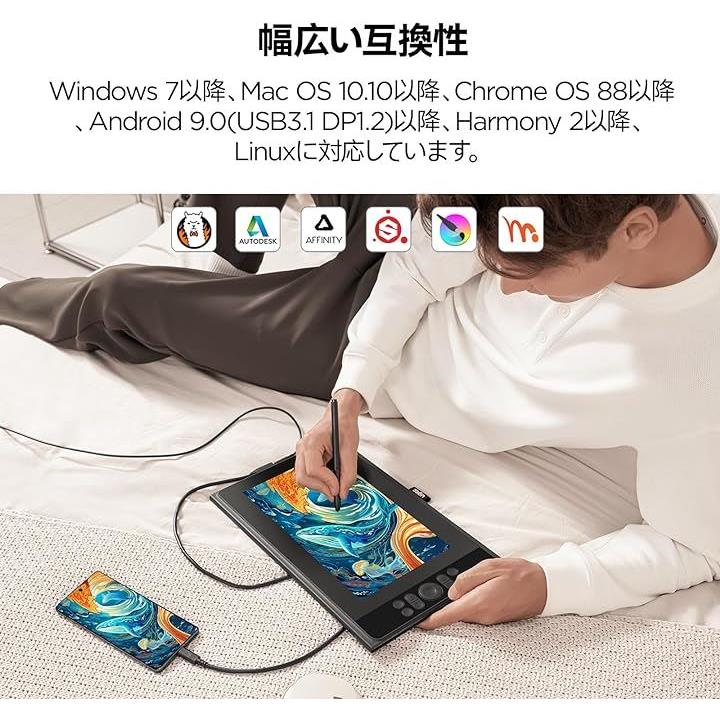 互換品液タブ UE12 PLUS 液晶ペンタブレット 11.9インチ 豪華版 充電不要スタイラスペン 8192レベル筆圧 ±60°傾き検知 1920x1080P 3つ色空間切り替え お絵描き Windows Mac Chrome Android 対応 ブラック