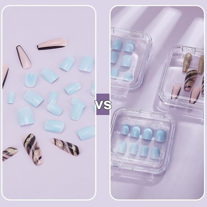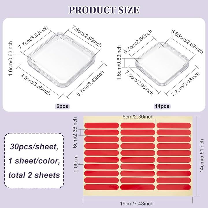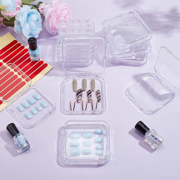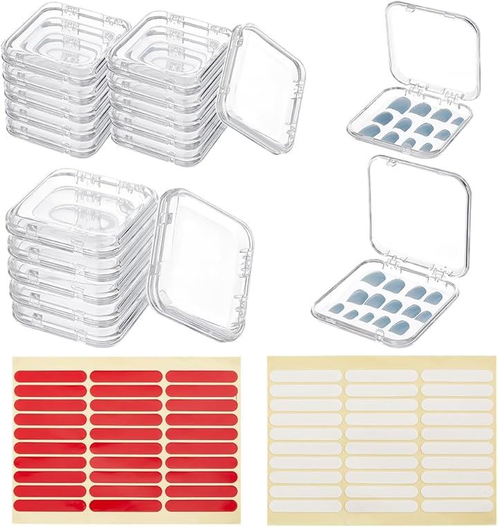 つけ爪収納ボックス 20個 2サイズ 両面テープ2シート入り 透明 人工爪 クリアディスプレイ収納ケース パッキングボックス ネイルサロンに