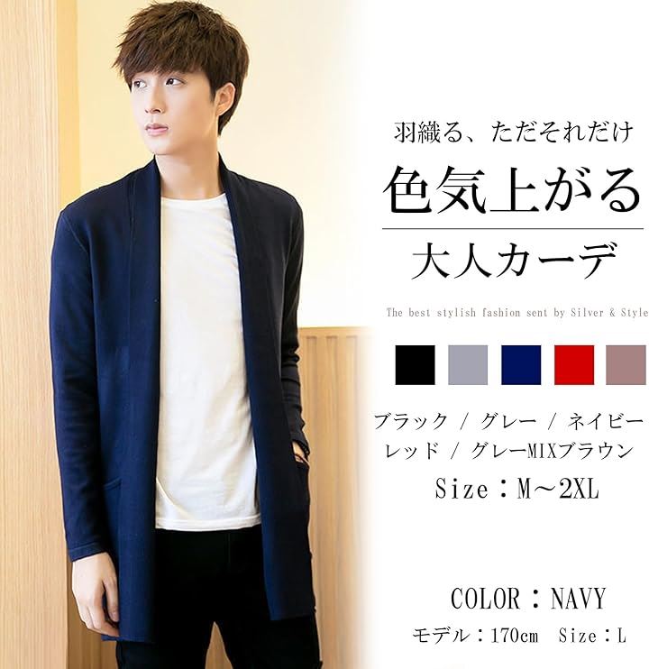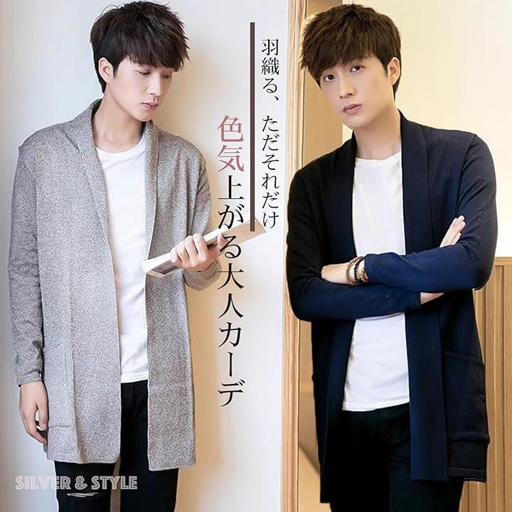 モード系、個性派、ホスト、お兄系など、様々なファッションに合わせられるカーデ、学生から中高年男性まで、幅広い年代でご着用頂けます。