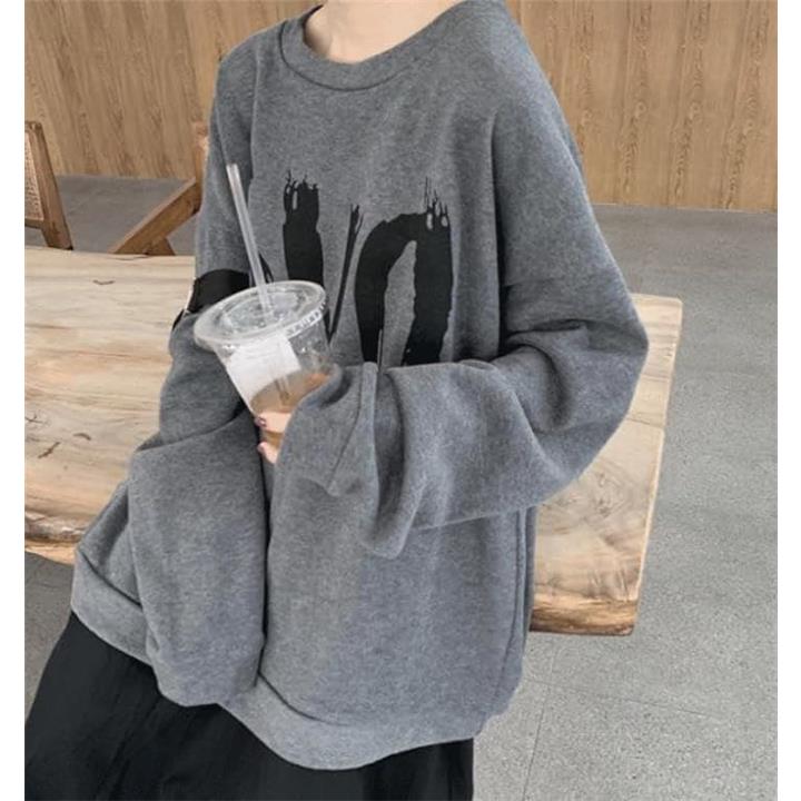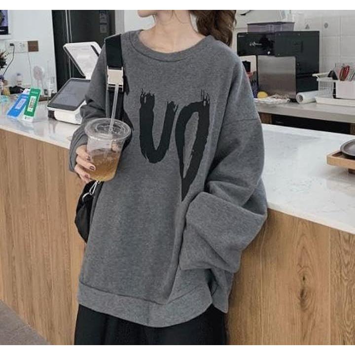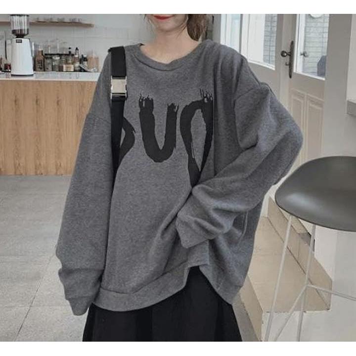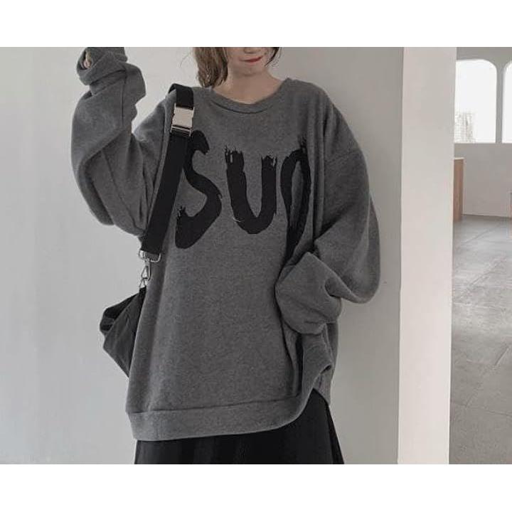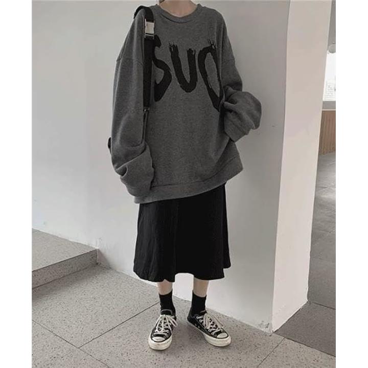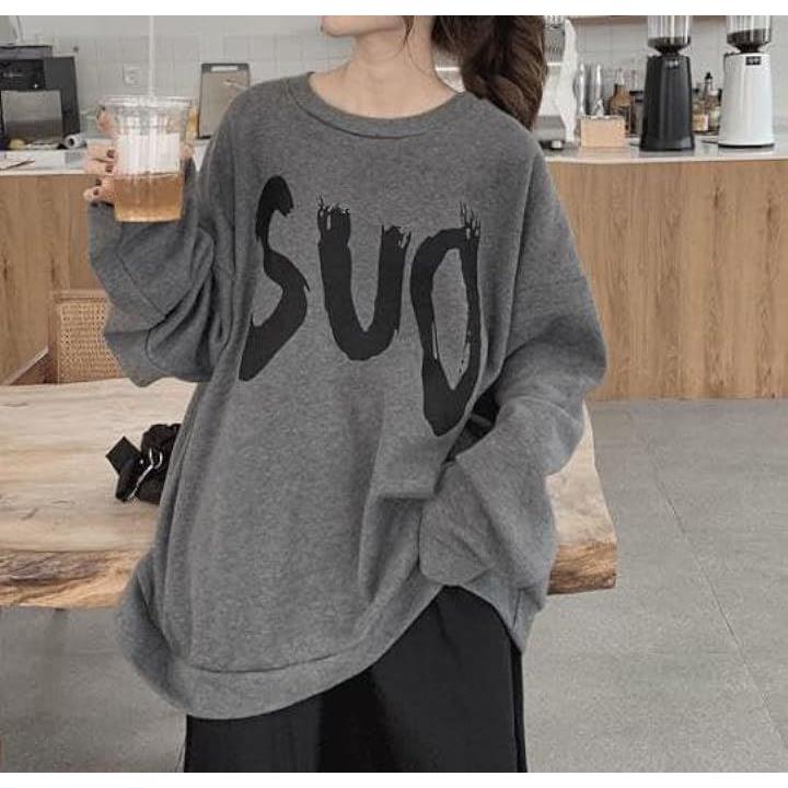 ウスデ カワイイ ゆったりサイズ プルオーバー 長袖 だる着 トレーナー レディース トップス チュニック カットソー ストリート (S) グレー |