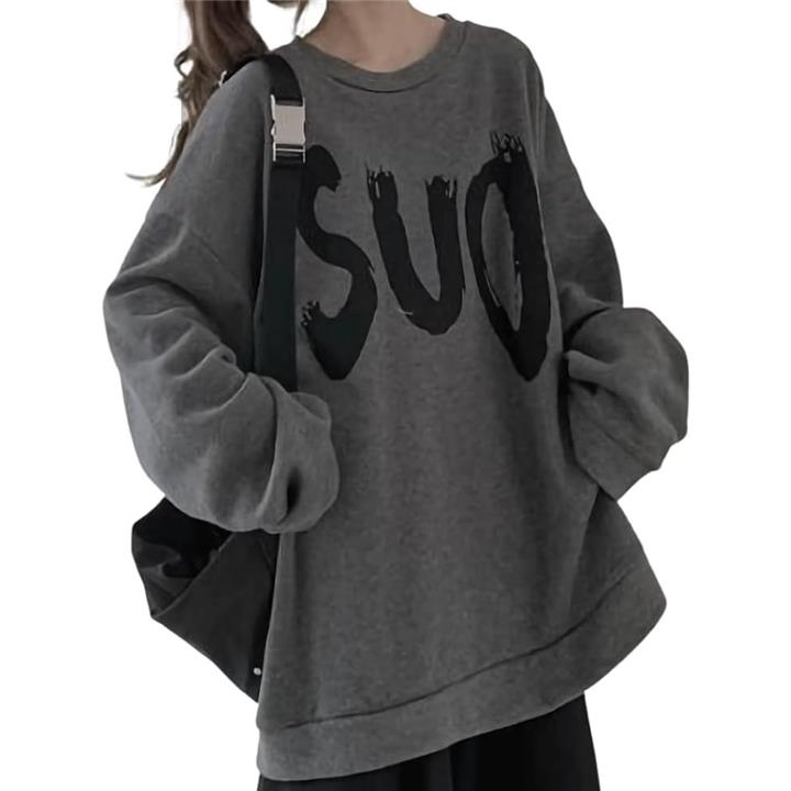 ウスデ カワイイ ゆったりサイズ プルオーバー 長袖 だる着 トレーナー レディース トップス チュニック カットソー ストリート (XL) グレー |