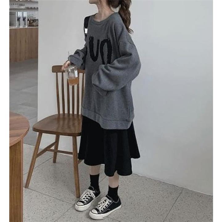 ウスデ カワイイ ゆったりサイズ プルオーバー 長袖 だる着 トレーナー レディース トップス チュニック カットソー ストリート (M) グレー |