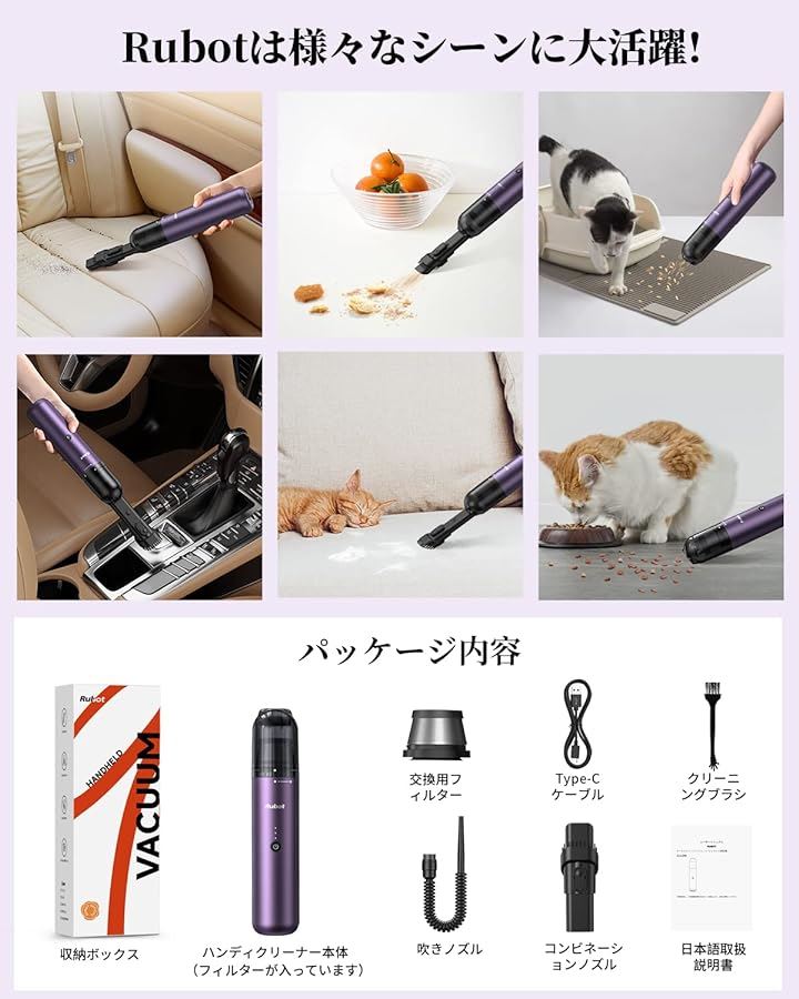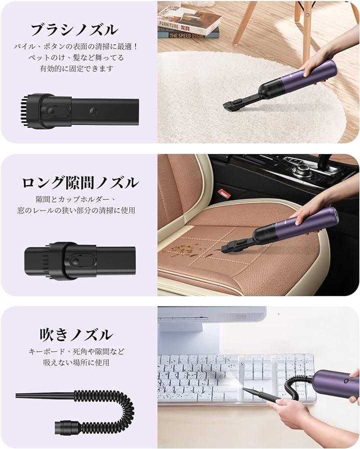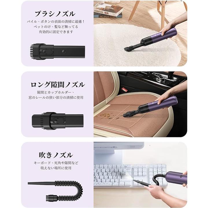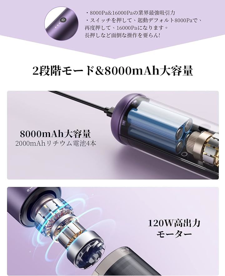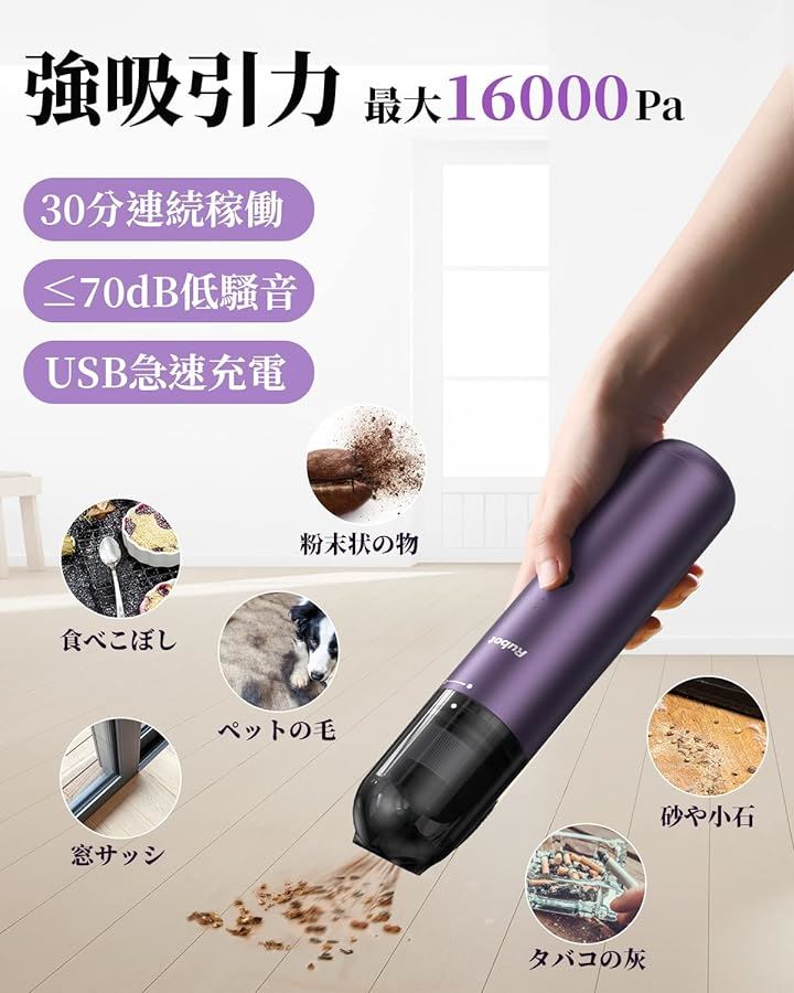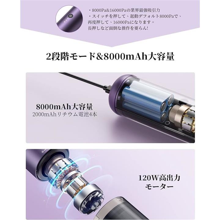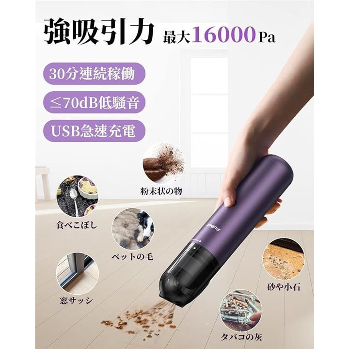 ハンディクリーナー 車用掃除機 16000PA 強力吸引 卓上クリーナー コードレス ミニ掃除機 低騒音 usb充電 2段階モード 日本語取扱説明書