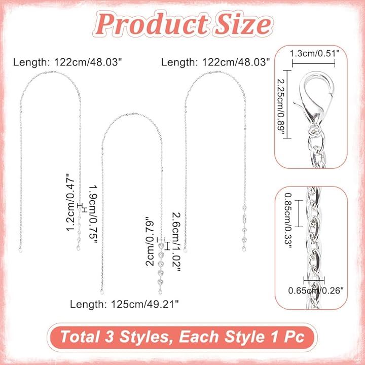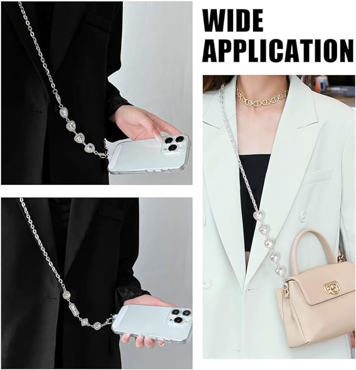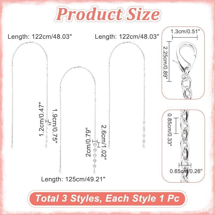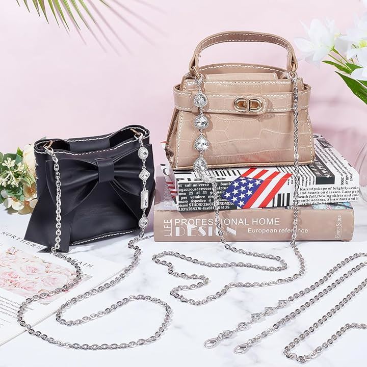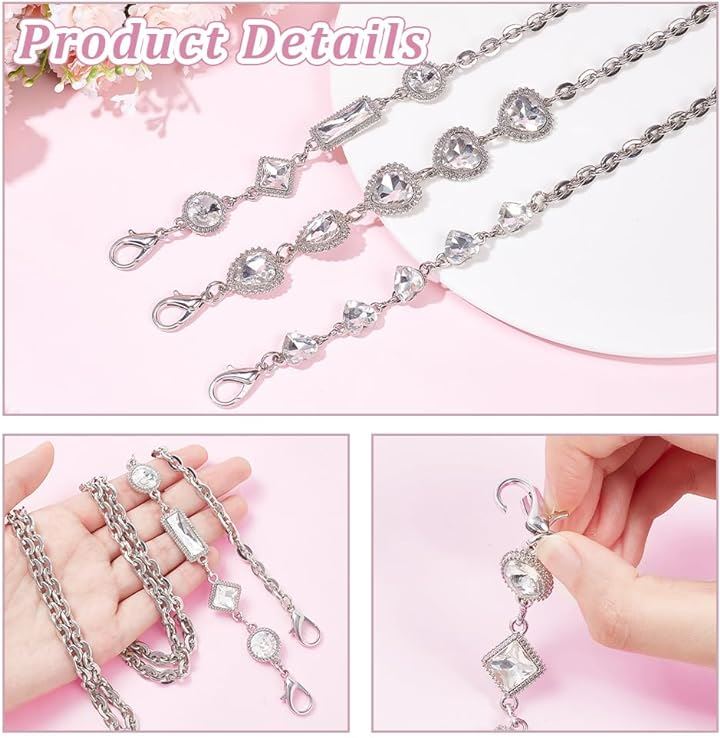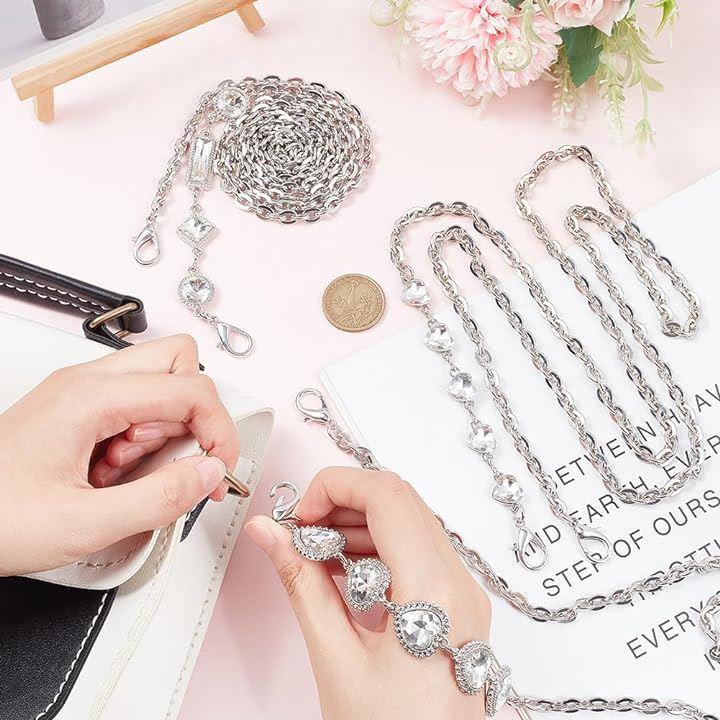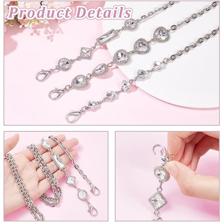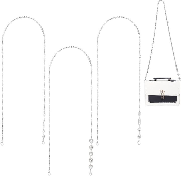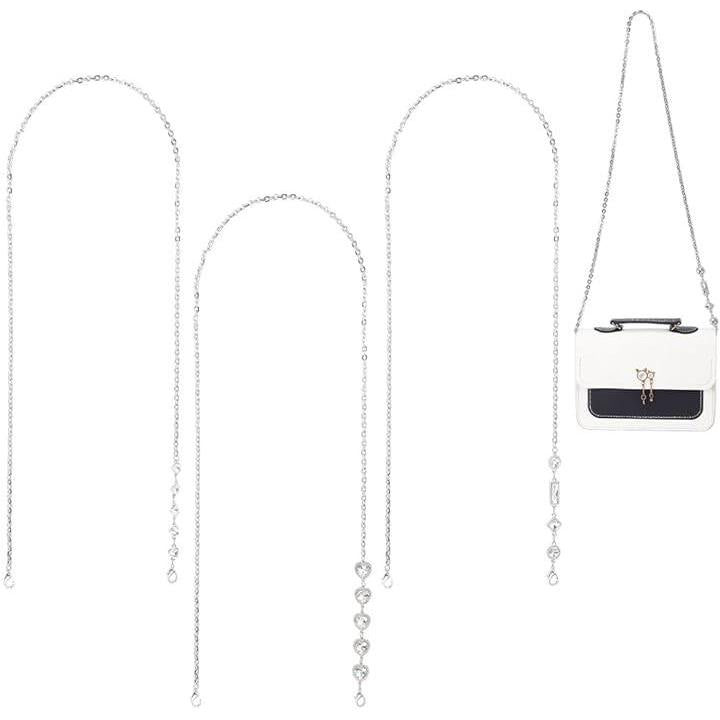 3点 ショルダー クロスボディ チェーン 122cm ガラス ラインストーン パース ストラップ 交換用 合金 ロング バッグ ハンドバッグ 金属製 アクセサリー ミニポシェット サッチェル 財布用