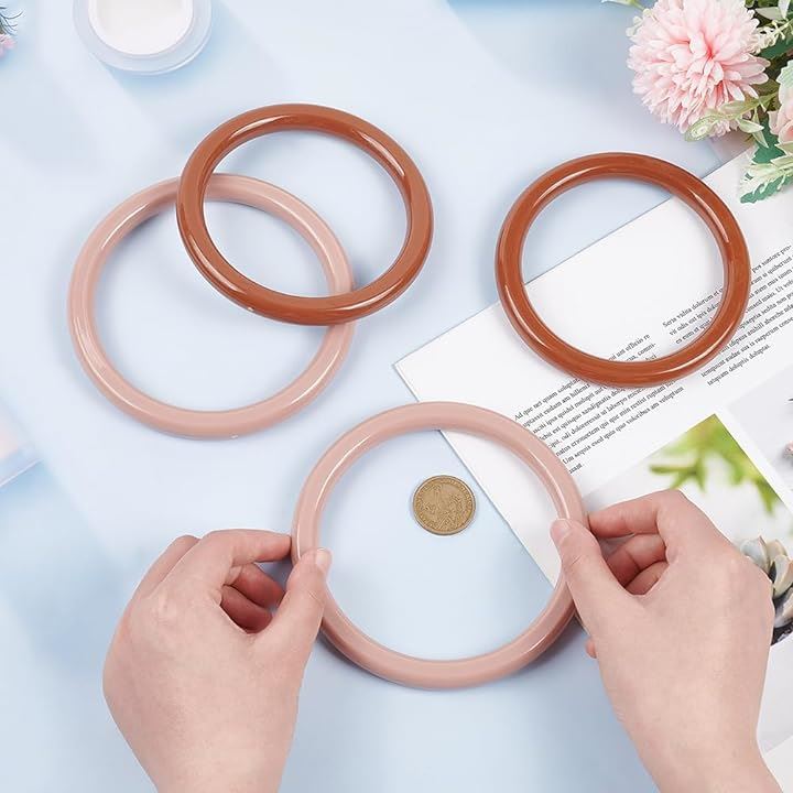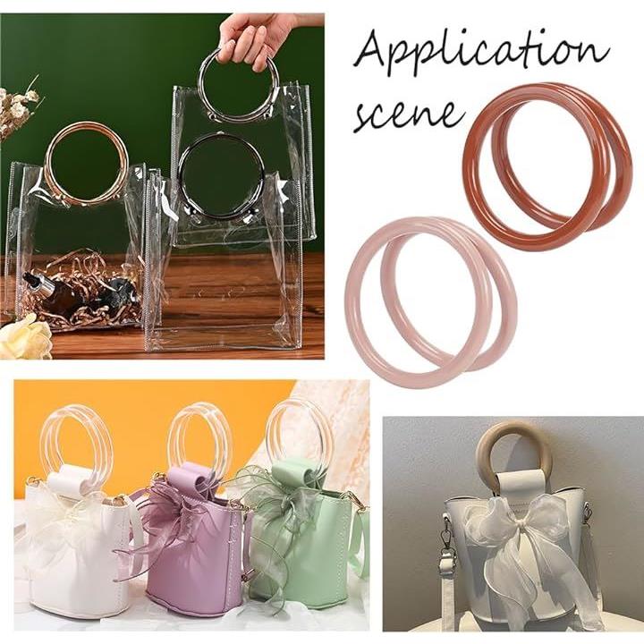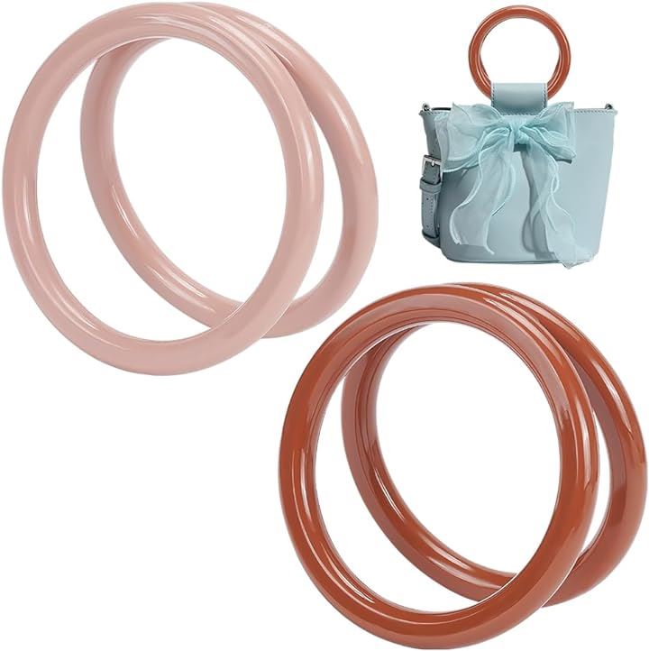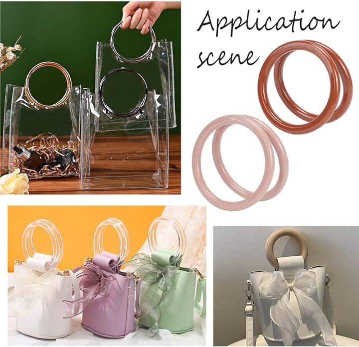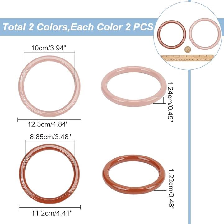 4個入り 模造木材 ハンドバッグ付け替えハンドル、2サイズ プラスチック製ラウンド型バッグハンドル バッグ製作・手作りハンドバッグ・ハンドメイド用 装飾トップハンドル かぎ針編みバッグ・ラタン編みビーチバッグ用
