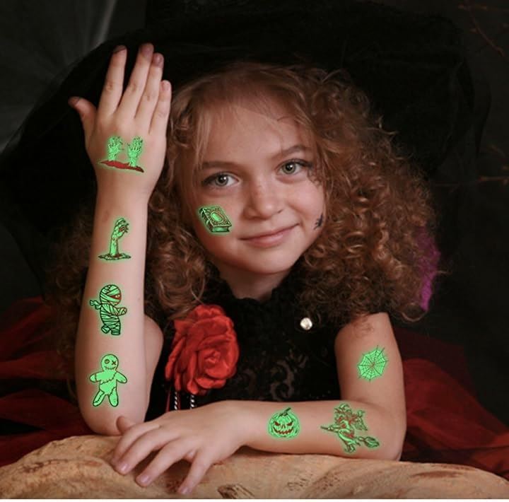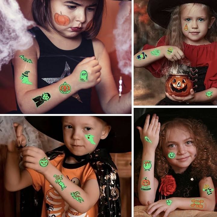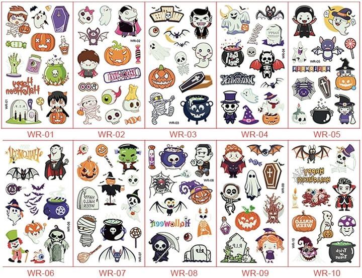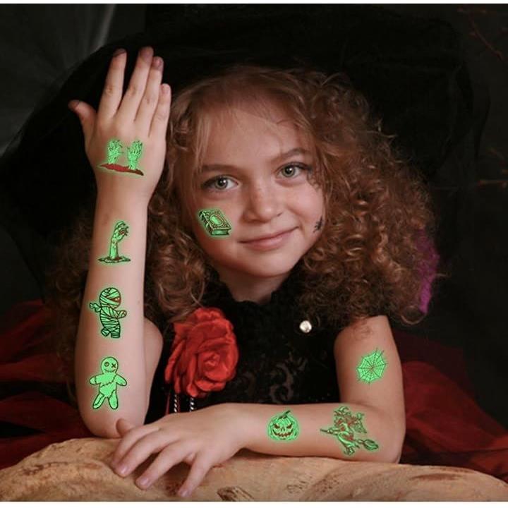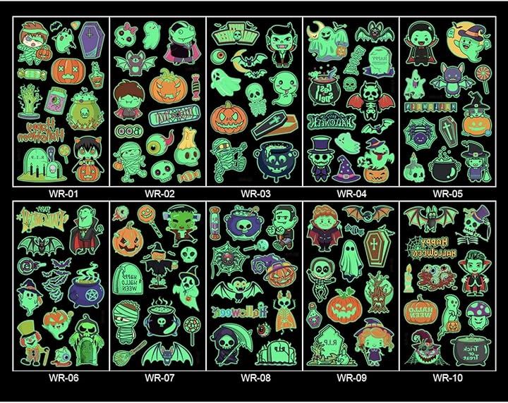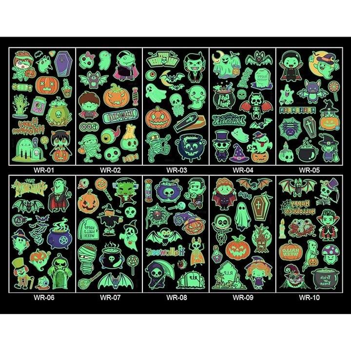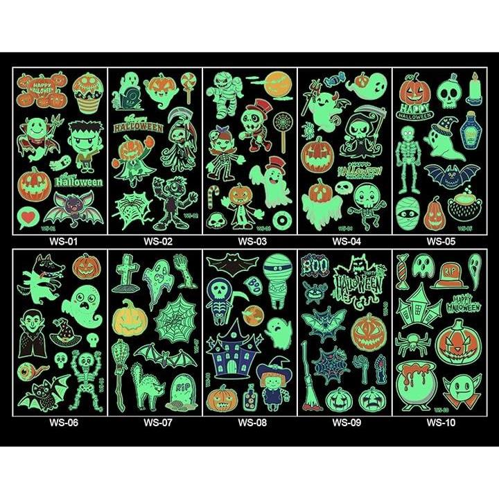 ハロウィン 夜光 蛍光 タトゥー シール 10枚セット 4種類 ステッカー ボディフェイス 仮装 コスプレ 光る お化け 図柄