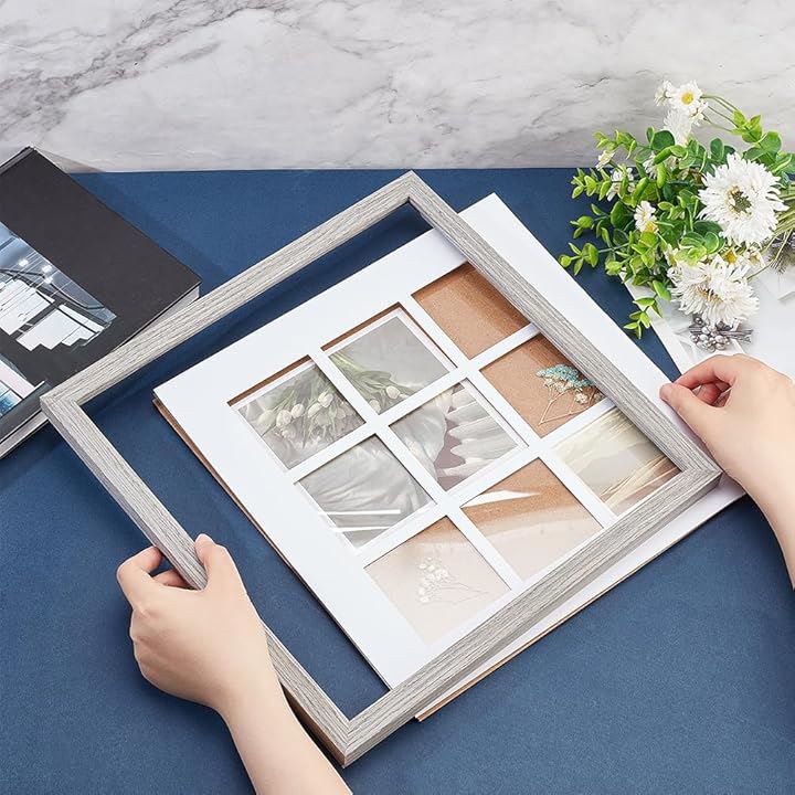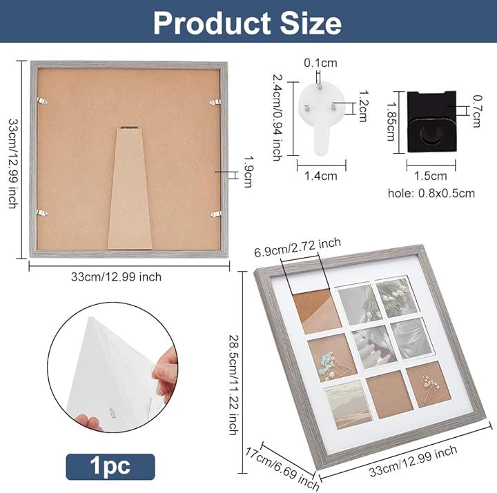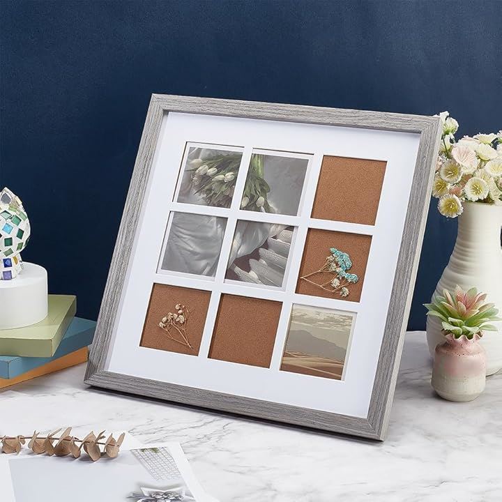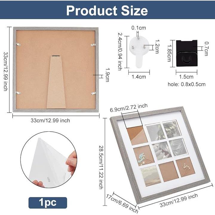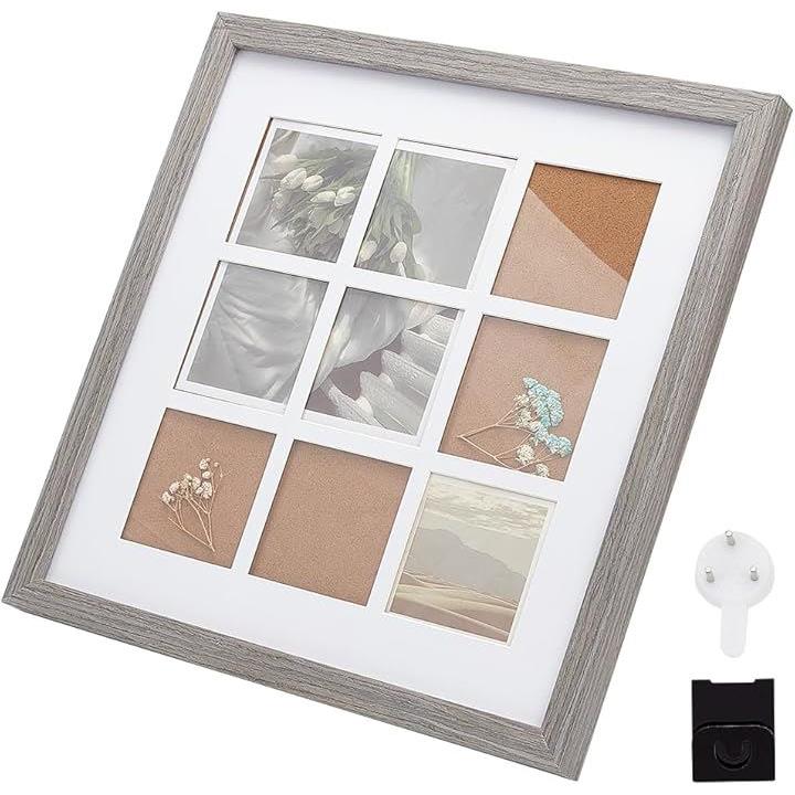 正方形 木製 フォトフレーム 額縁 写真立て アルバム 写真フレーム ポスターフレーム 壁掛け 卓上 両用 インテリアフレーム 写真9枚収納可能 330x170x285mm