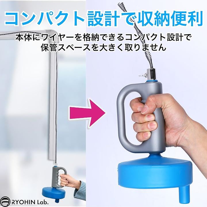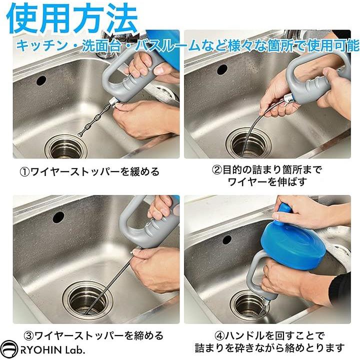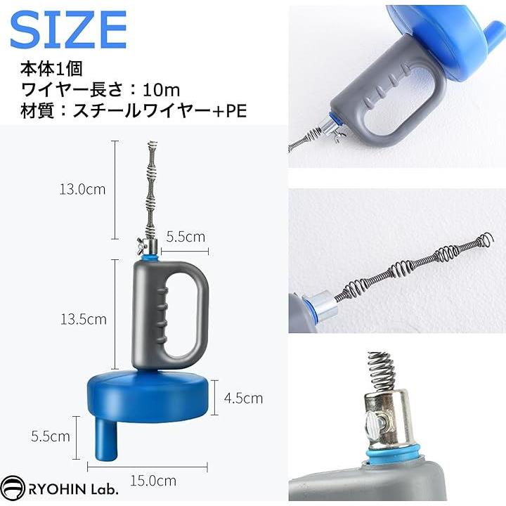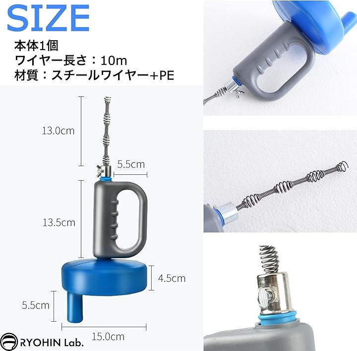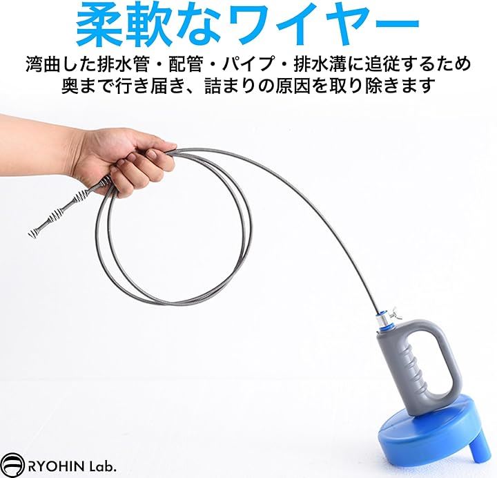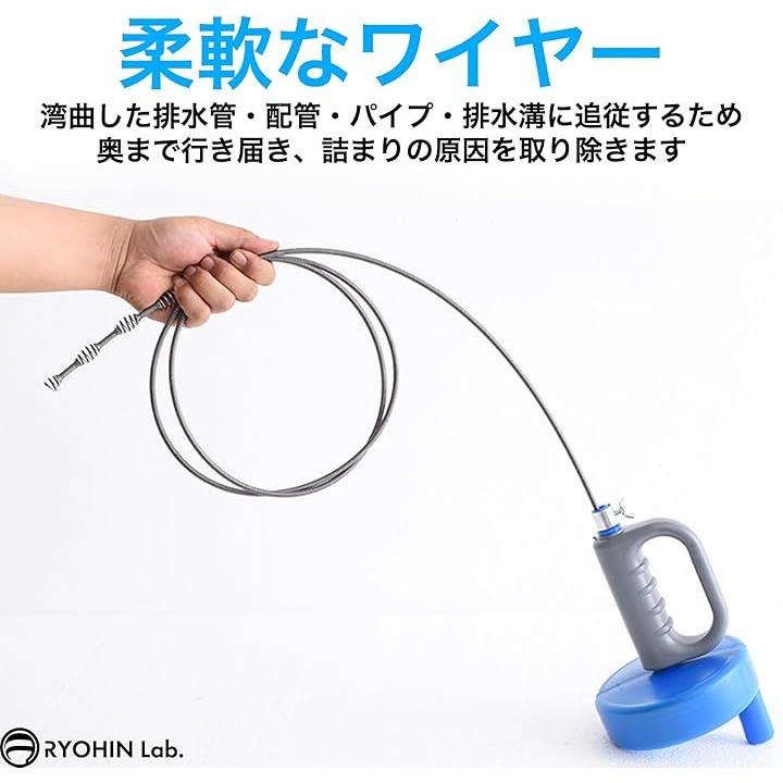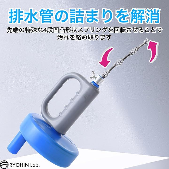 良品ラボ パイプクリーナー ワイヤー 回転式 排水溝 排水管 風呂 キッチン トイレ 洗面所 ゴミ 髪の毛 つまり 解消 4段階スプリング 1個