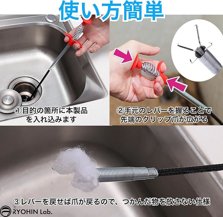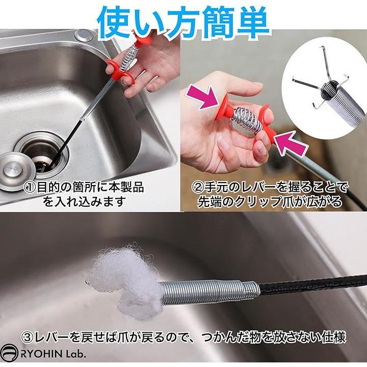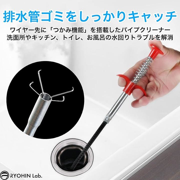 良品ラボ パイプクリーナー ワイヤー 排水溝 排水管 風呂 キッチン トイレ 洗面所 ゴミ 髪の毛 つまり 解消 1個